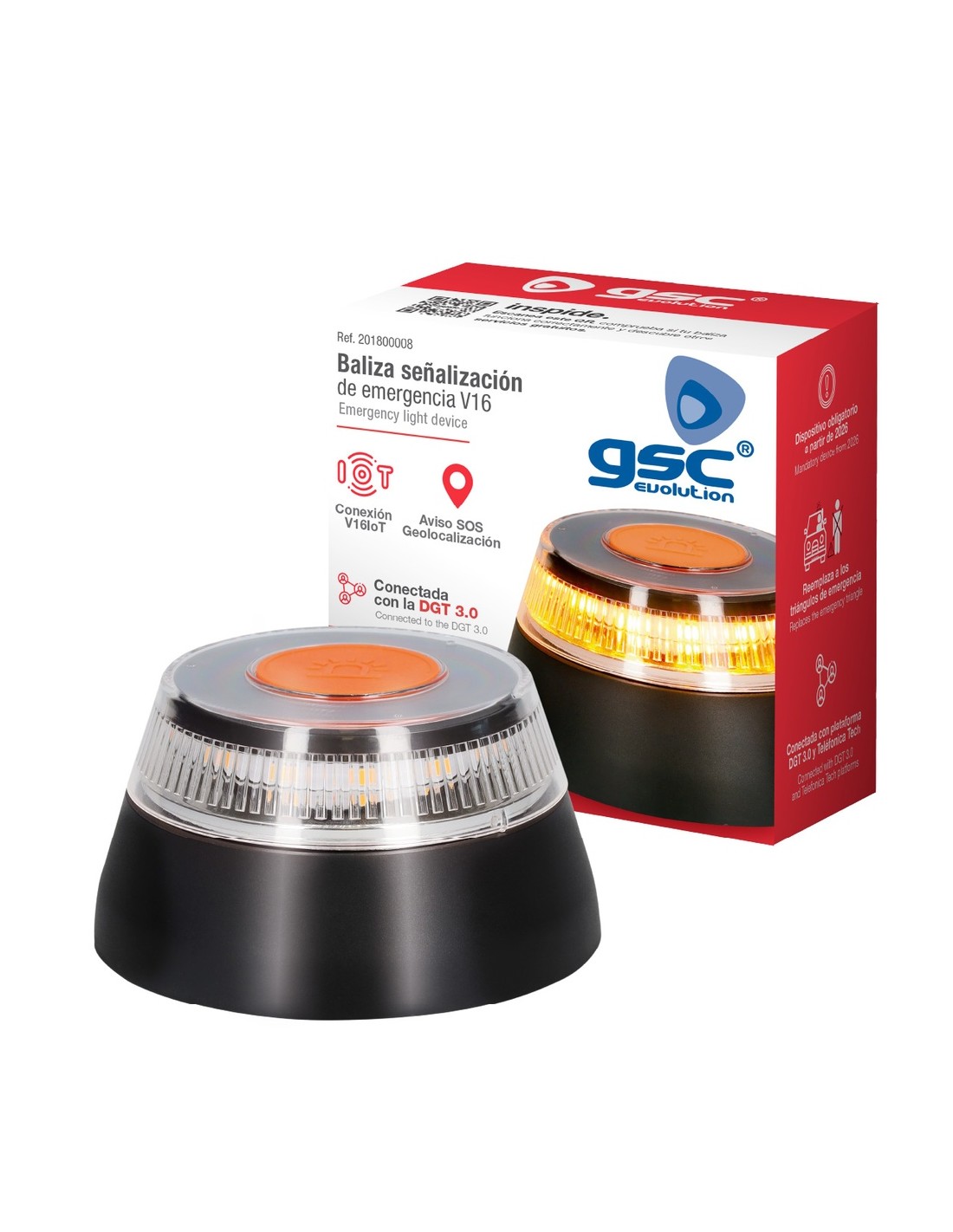 La baliza de señalización de emergencia V16 con geolocalización de GSC Evolution es una innovadora herramienta de seguridad diseñada para sustituir los triángulos de emergencia tradicionales y que será obligatoria a partir de enero de 2026.