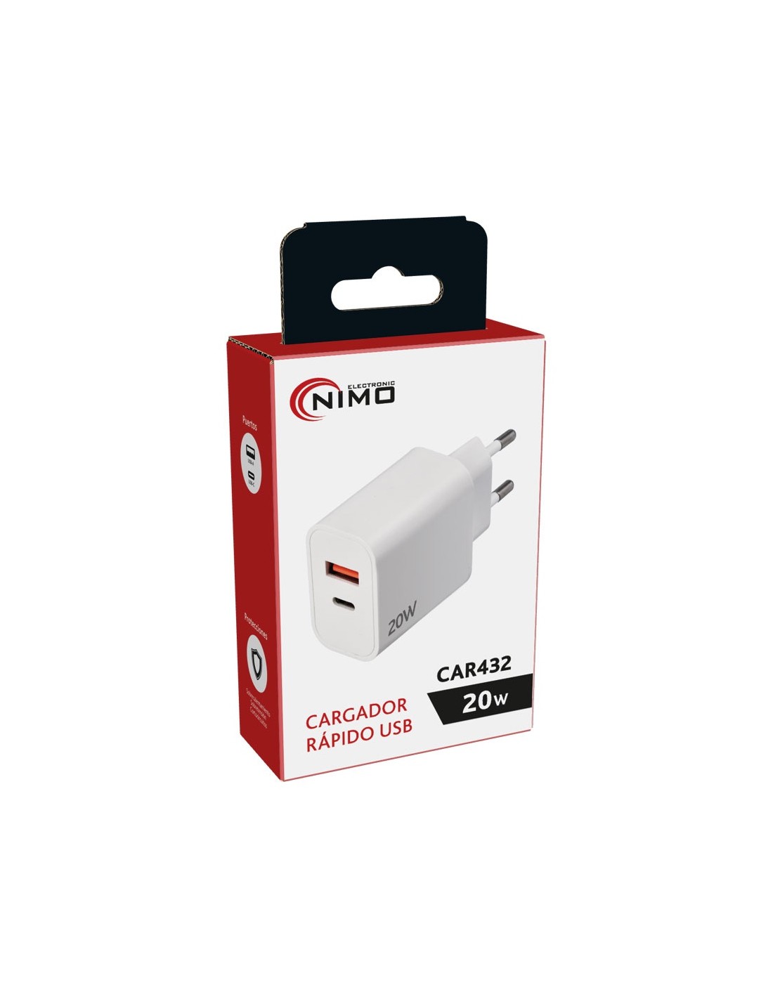 CARGADOR RAPIDO USB TIPO-C + USB-A 20W CAR432