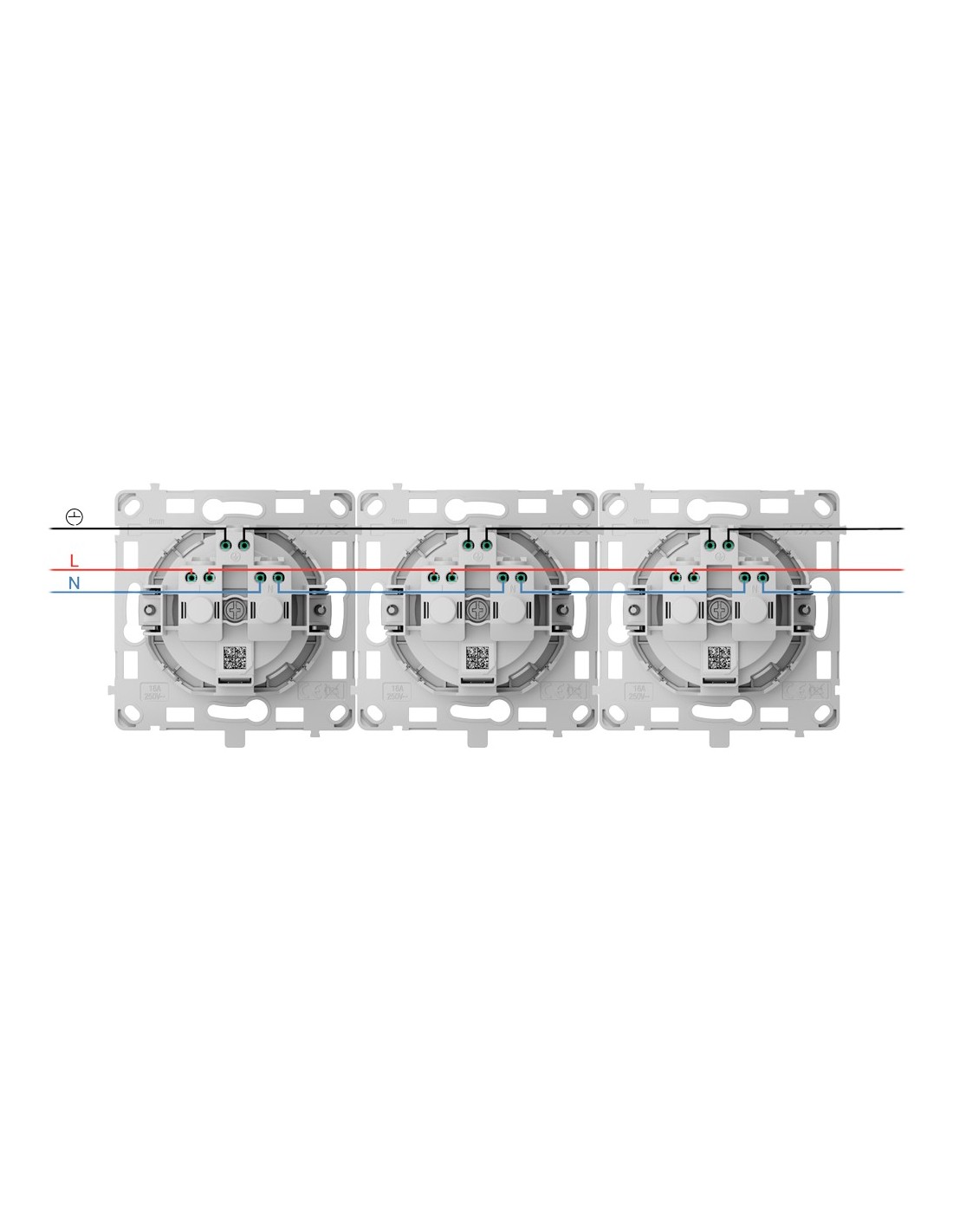 Enchufe básico vertical tipo F - Alimentación 250 V AC 50/60 Hz - Hasta 3.6 kW (carga resistiva a 250 V) - Protección contra polvo y salpicaduras - Anti inserción de objetos - Sin control remoto