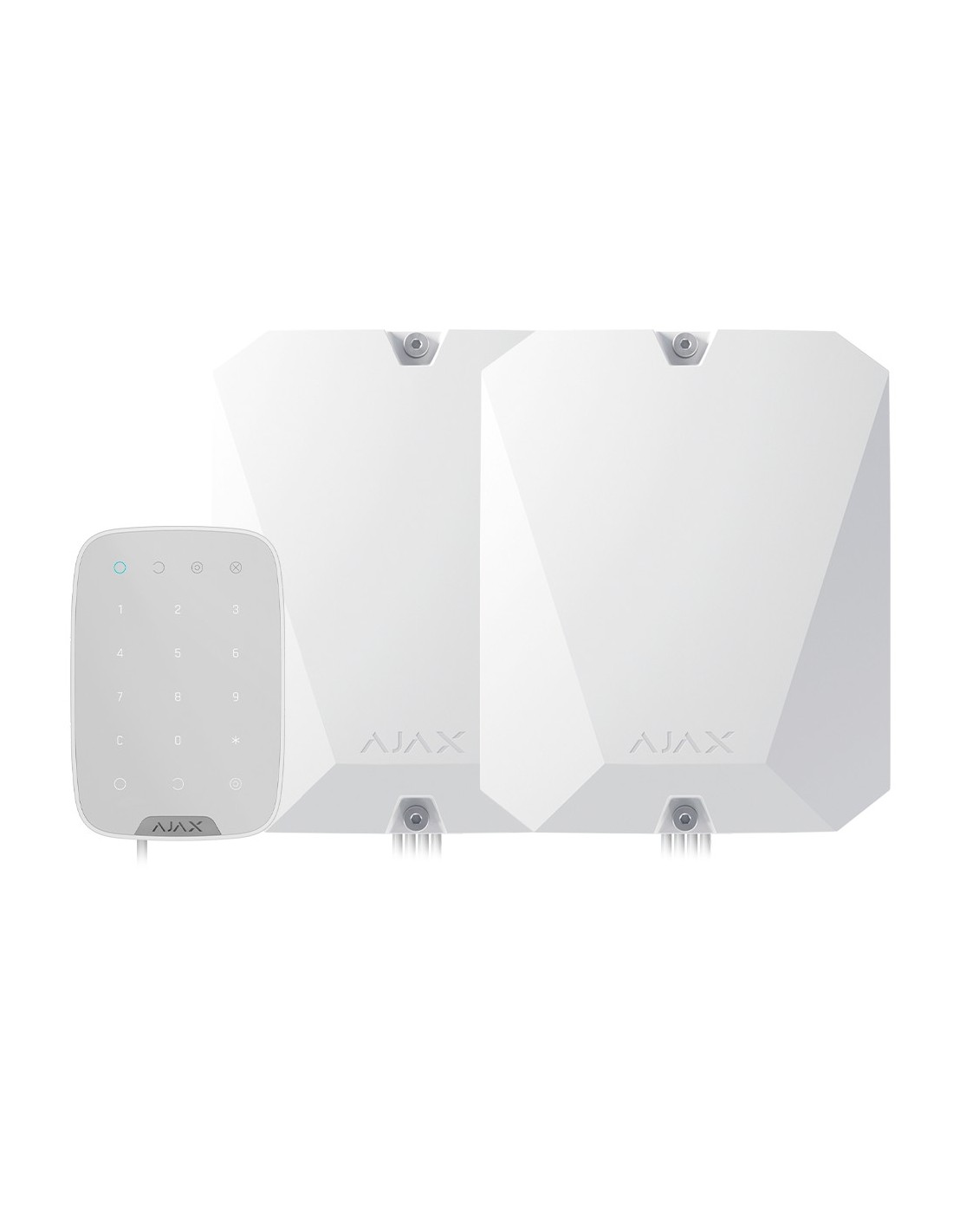 - Kit formado por: un panel híbrido FIBRA-HUBHYBRID-4G-W-NF, un teclado cableado FIBRA-KEYPAD-W-NF y un expansor de zona cableada FIBRA-MULTITRANSMITTER-W-NF