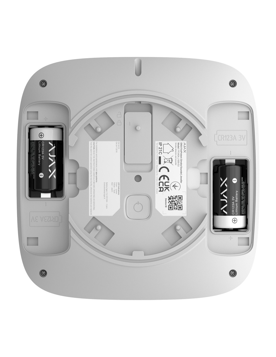 El AJ-EN54-SMOKE-SOUNDER-W de Ajax es un detector inalámbrico combinado de humo con sirena integrada, certificado según las normativas europeas EN 54-7, EN 54-3 y EN 54-25. Este dispositivo está diseñado para ofrecer una detección precisa y rápida de incendios, combinando un sensor óptico de doble espectro para humo y una sirena acústica para alertas inmediatas en cumplimiento con la normativa EN 54-3.