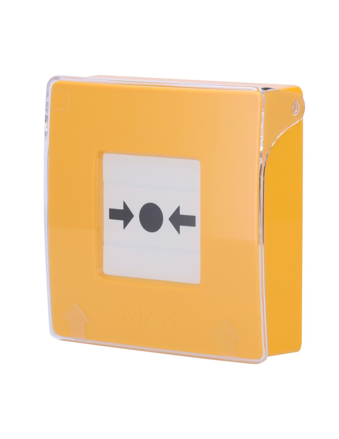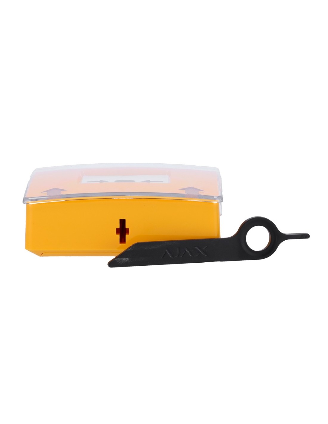 Botón manual de alarma de incendio amarillo - Inalámbrico 868 MHz Jeweller - Botón alarma incendio o activador de escenarios - Compatible con función de alarma interconectada - Transmisión de alarmas a CRA (configurable) - Alimentación 2 pilas CR123A