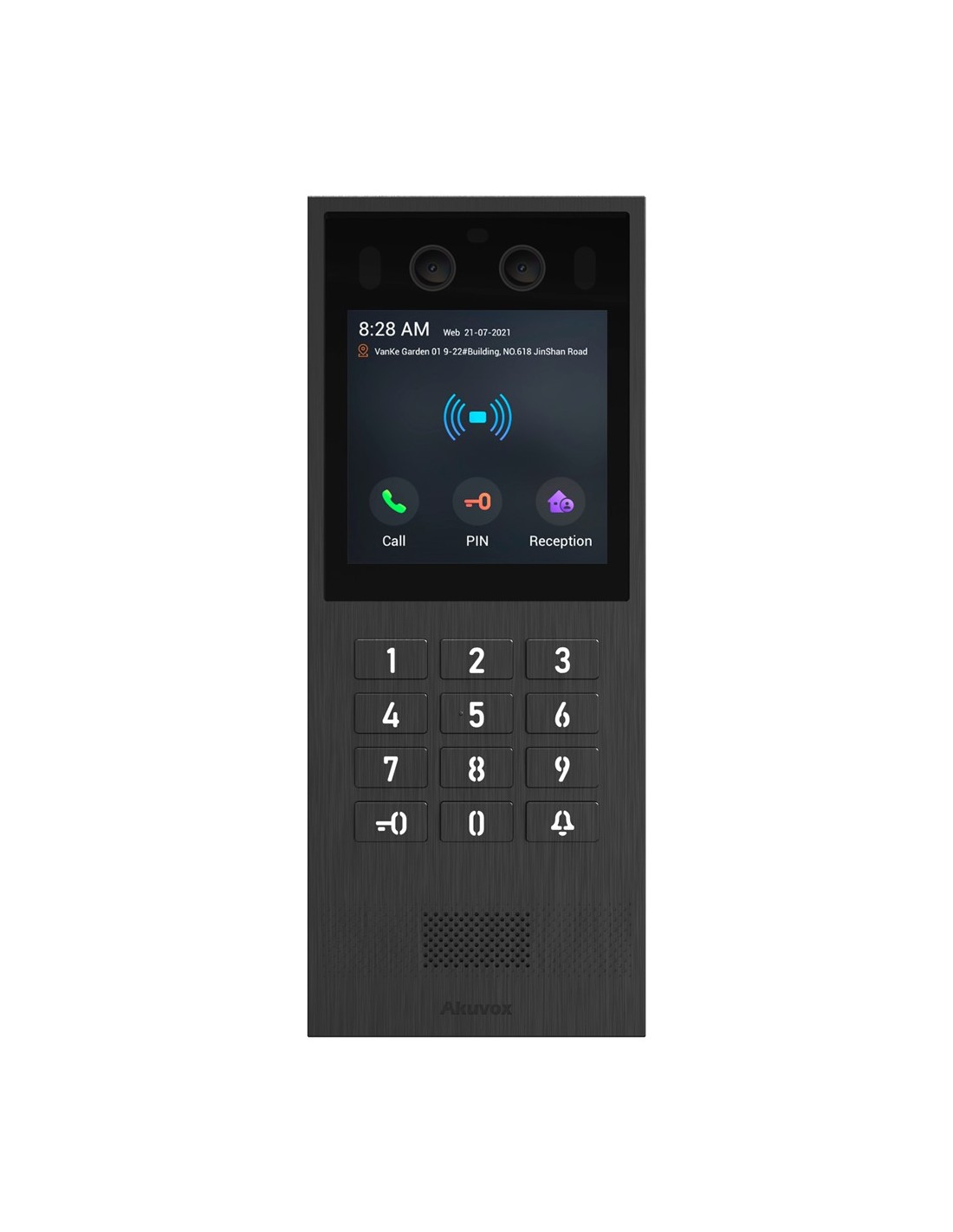 Estos equipos también tienen la capacidad de abrir la puerta mediante sus salidas de relé. Este modelo dispone de 2 salidas de relé para poder gestionar hasta 2 puertas de forma simultánea, con salida de 12 VDC (permite alimentar directamente la cerradura electrónica sin necesidad de una fuente de tensión adicional al alimentarse el equipo por PoE estándar). Además, cuenta con control de acceso integrado, permitiendo la identificación a través de tarjetas o llaveros con tecnología RFID EM de 125 kHz y MF de 13.56 MHz, Bluetooth, lectura de códigos QR, así como teclado para códigos numéricos y biometría con reconocimiento facial. También dispone de códigos PIN y QR temporales para dar accesos limitados desde su aplicación móvil SmartPlus.
