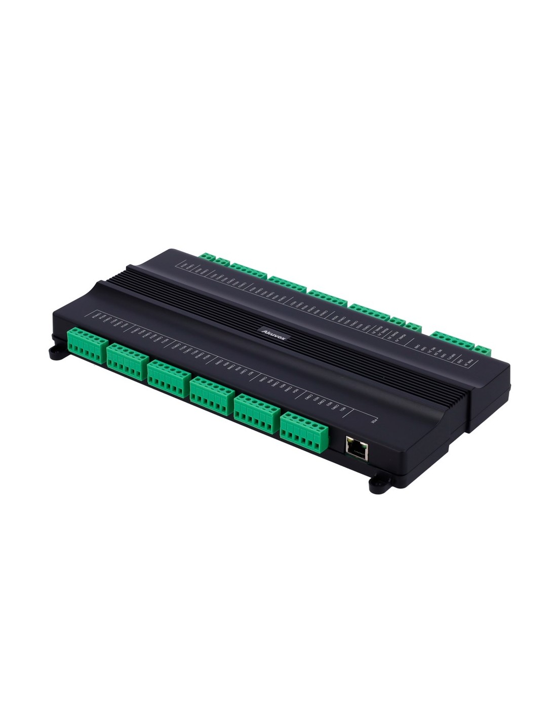 Las controladoras permiten gestionar varias puertas de manera simultánea mediante varias salidas de relé. Este modelo cuenta con 32 salidas de relé, siendo configurables como contacto seco (sin tensión).