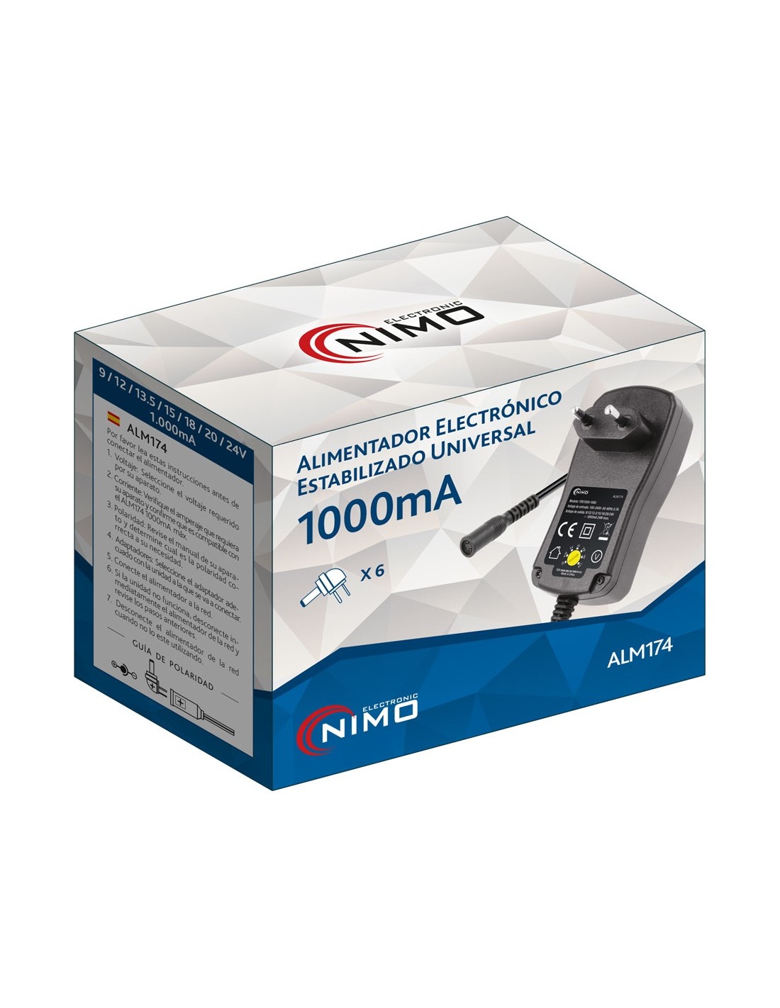 • Salida de voltaje 9.0V, 12.0V, 13.5V, 15.0V, 18.0V, 20.0V y 24.0Vcc - 1000mA.