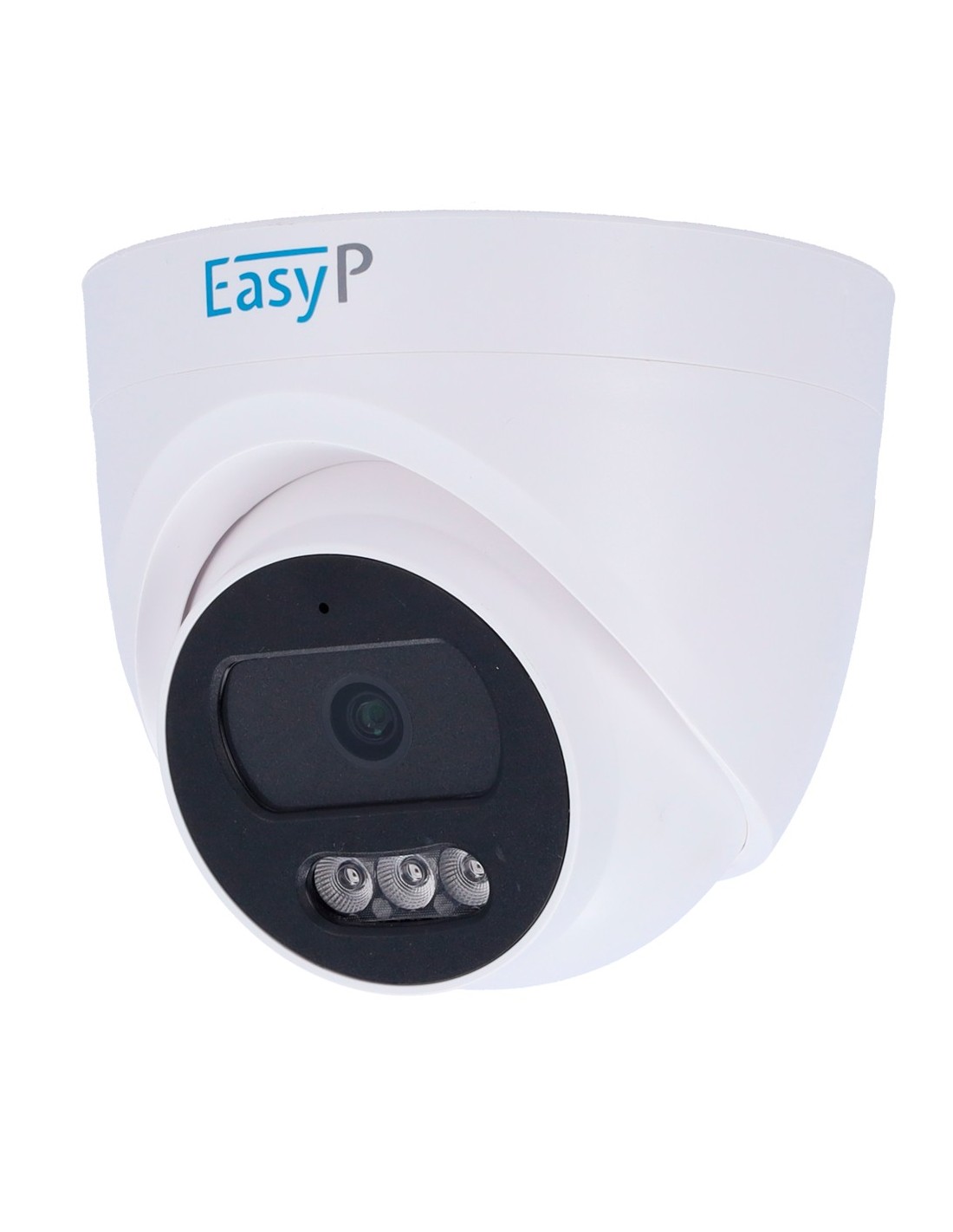 Cámara Turret IP EASY-P - 2MP | Lente 4 mm - IR 25 m | Mic - Instalación Plug & Play - IA por Humanos y/o Vehículos - PoE | P2P