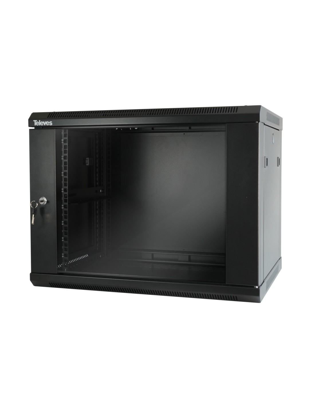 Rack 19'' 8+2U. El rack 8+2U se utiliza para introducir en su interior equipación pasiva o activa, permitiendo quede visible y protegida bajo una estructura segura (acero) y bajo llave. Compatible con instalaciones de fibra óptica, cable de datos, o cable coaxial, permite agrupar en un mismo armario, las diferentes tecnologías. Su capacidad es de un total de 10U, es decir 8U con 2U extra aprovechando el extremo superior e inferior Diseñado para instalación en pared o suelo. Dimensiones (Anc x Al x Pr): 600mm x 460mm x 450mm Peso: 23,5kg Método de suministro: Desmontado.. Alta resistencia y durabilidad: fabricado en acero y con revestimiento realizado con resinas de poliéster y pigmentos sin plomo. Soporta cargas de hasta 60kg en su interior. Gran facilidad de montaje: incluye una pletina en L, para su montaje en pared . Pletina independiente del rack: permite marcar los puntos perforación en la pared, atornillarla y, entonces, instalar el rack sobre ella. Comodidad en la utilización: puerta frontal reversible y desmontable con encaje flexible y puertas laterales abatibles mediante bisagra. Instalación de diferentes tipos de paneles o equipos: los perfiles laterales son ajustables en profundidad. Seguridad: Puerta frontal abisagrada con cristal templado y cerradura. Ventilación natural con posibilidad de ventilación forzada. Serigrafía láser: identificación numérica de cada ''U''.