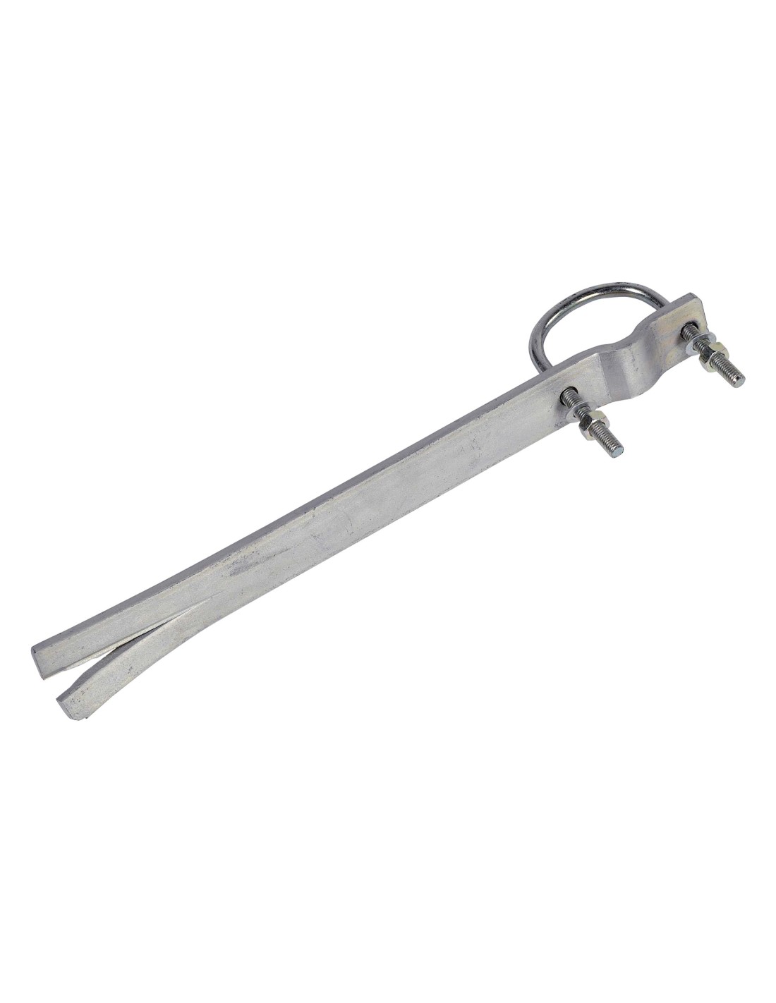 Soporte recto con perfil en ''I'', 350mm Zinc + RPR. Soporte recto con perfil en forma de ''I'' para la instalación de mástil en un emplazamiento en el que se pueda empotrar, con una separación de 350mm. Se instalan en pares para asegurar el mástil en dos puntos. Fabricado en acero y de gran resistencia a la corrosión, gracias a su tratamiento dual de galvanizado y sellado reactivo (RPR). . Tratamiento de zincado + RPR: Gran resistencia a la corrosión.
