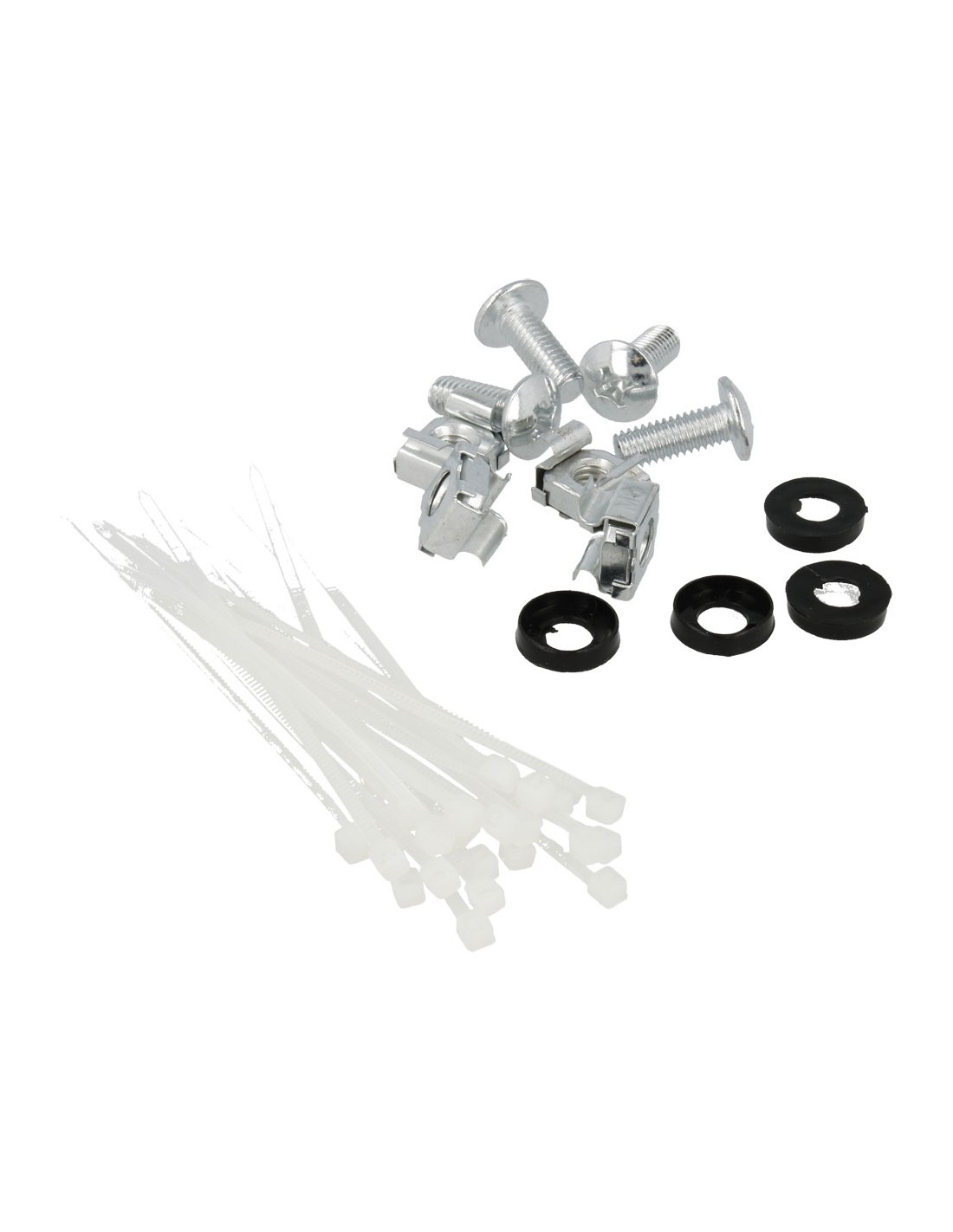 Accesorios incluidos: 4 tornillos M6, 4 tuercas y 24 bridas de plástico