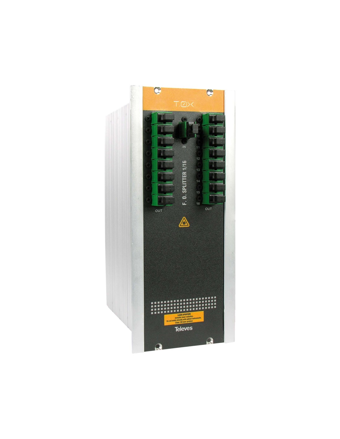 Repartidor óptico T.0X SC/APC 16D 1260...1650nm 14dB. Repartidor de 16 direcciones y conectores SC/APC, para señales ópticas en un rango de 1260...1650nm. Su chasis en formato T.0X ofrece una instalación en rack, para cabeceras de fibra óptica. . Gran fiabilidad. Alta uniformidad entre las salidas. Formato serie T.0X.
