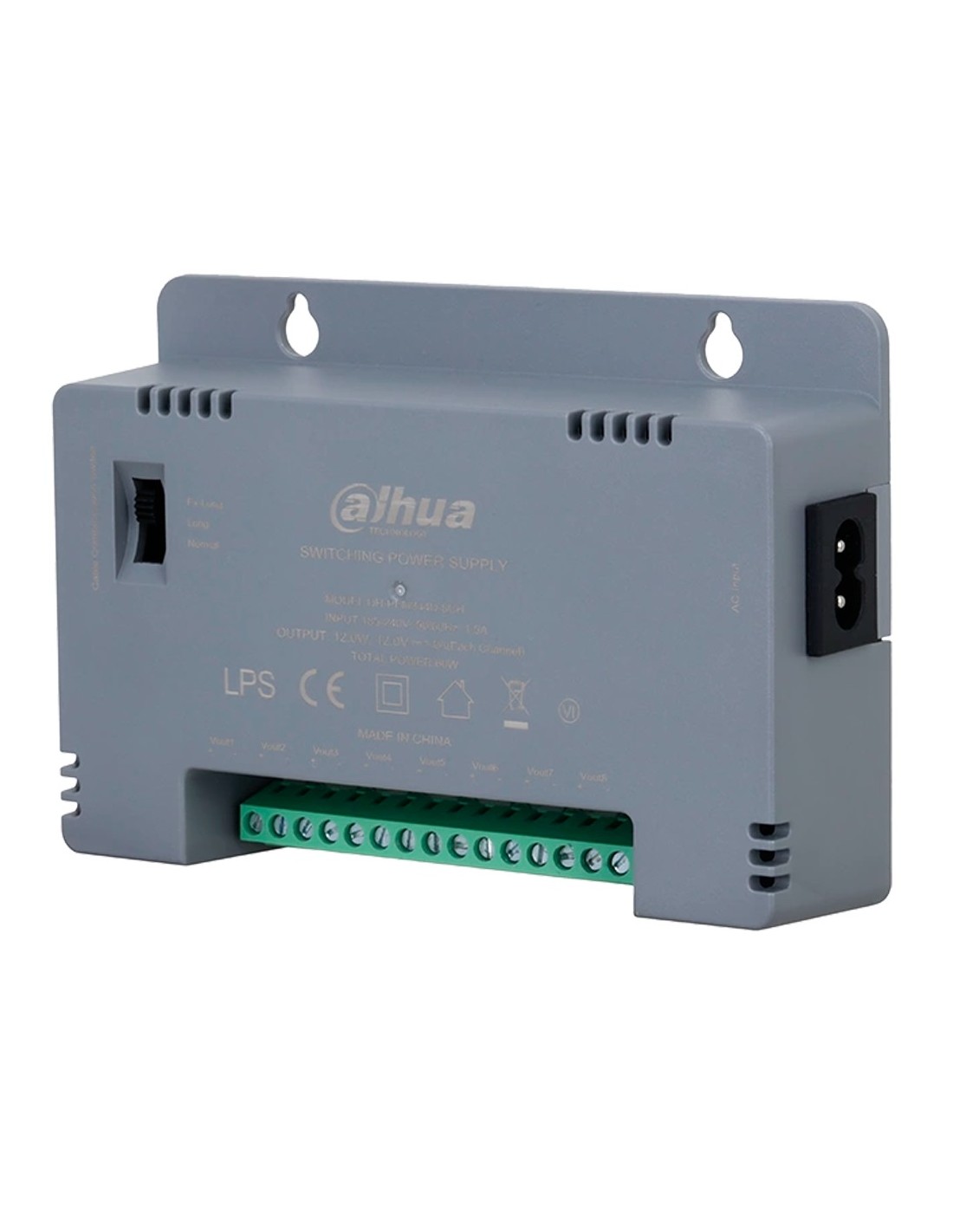 Fuente de alimentación conmutada - Entrada AC 185-240V - 50/60Hz 1.5A - Potencia total 60W - 8 salidas - Voltaje de salida Ajustable a 3 niveles - Salida DC 12 V / 12 W