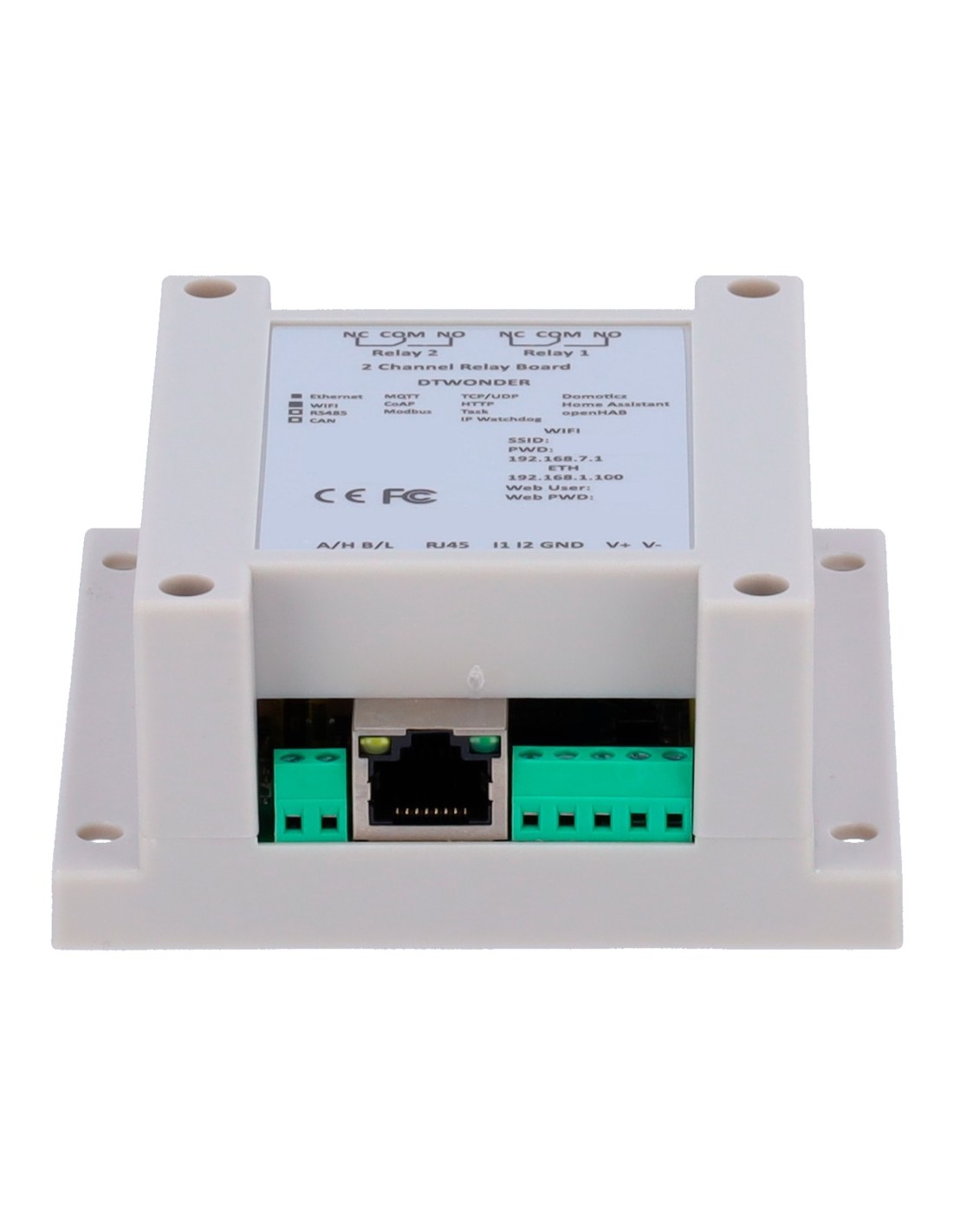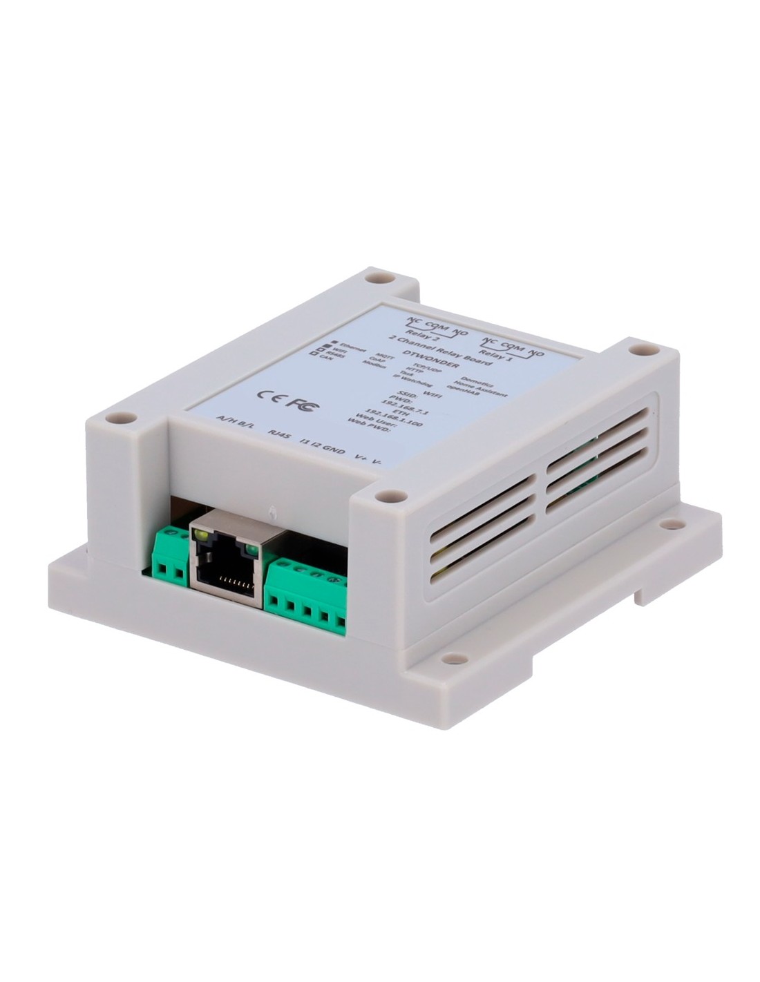 Módulo de adquisición y control de datos - 2 entradas digitales | 2 salidas de relé (NO/NC) - Protocolos: Modbus/TCP, TCP/IP, UDP, HTTP,... - Servidor web integrado - Puerto Ethernet 10/100 Base-TX | Puerto WiFi - No incluye alimentador (12VDC/1A)