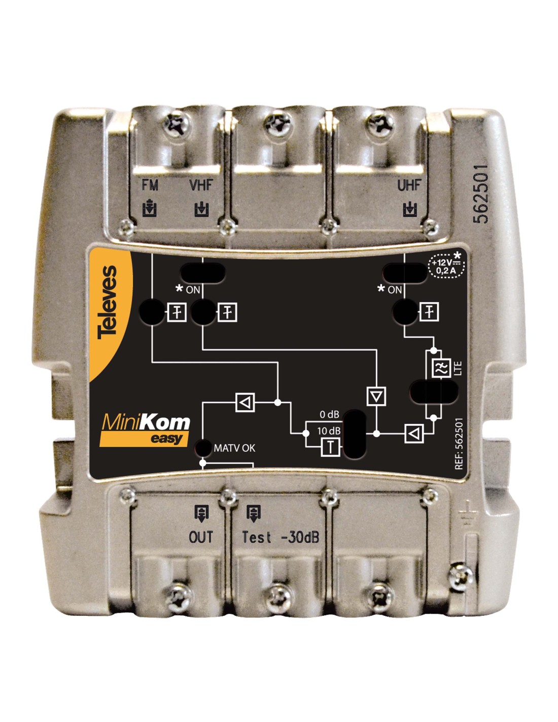 Amplificador MiniKom MATV 3e/1s "EasyF": FM-VHF-UHF