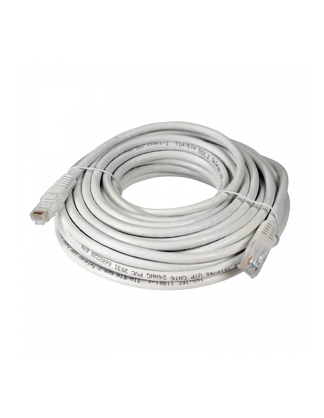 Cable de red Ethernet U/UTP Cat 6 PVC, blanco. Cable de red Ethernet preconectorizado con un conector RJ45 en cada extremo. Realizado con un cable de datos Cat 6 y tipo U/UTP, con conductor interno de cobre flexible 24 AWG y cubierta exterior de PVC en color blanco. 1. Embalaje: Caja, Longitud: 10 m.. Categoría 6. Cable de datos tipo U/UTP. Conductor interno de cobre flexible (24 AWG). Compatible con tecnología PoE/PoE+ (Power over Ethernet), permitiendo alimentar dispositivos de red a través del propio cable. Aislamiento del conductor de cobre en PE (Polietileno) de 0,96 mm de diámetro. Cubierta exterior en PVC (Cloruro de polivinilo) de 0,62 mm de espesor y con un diámetro de 5,7 mm. Velocidad nominal del 72%. Conectores RJ45 con terminaciones ''pines'' bañados en oro.