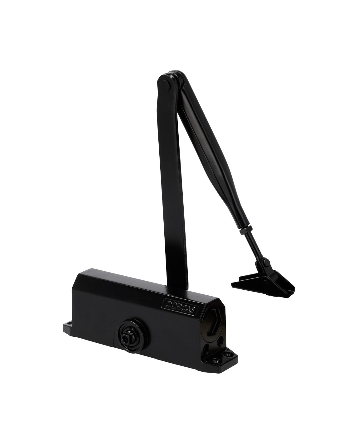 Cierrapuertas de brazo articulado - Instalación de superficie y reversible - Apertura convencional - Puertas entre 25~85 kg y 850~1100 mm - Velocidad ajustable - Apto para todo tipo de puertas