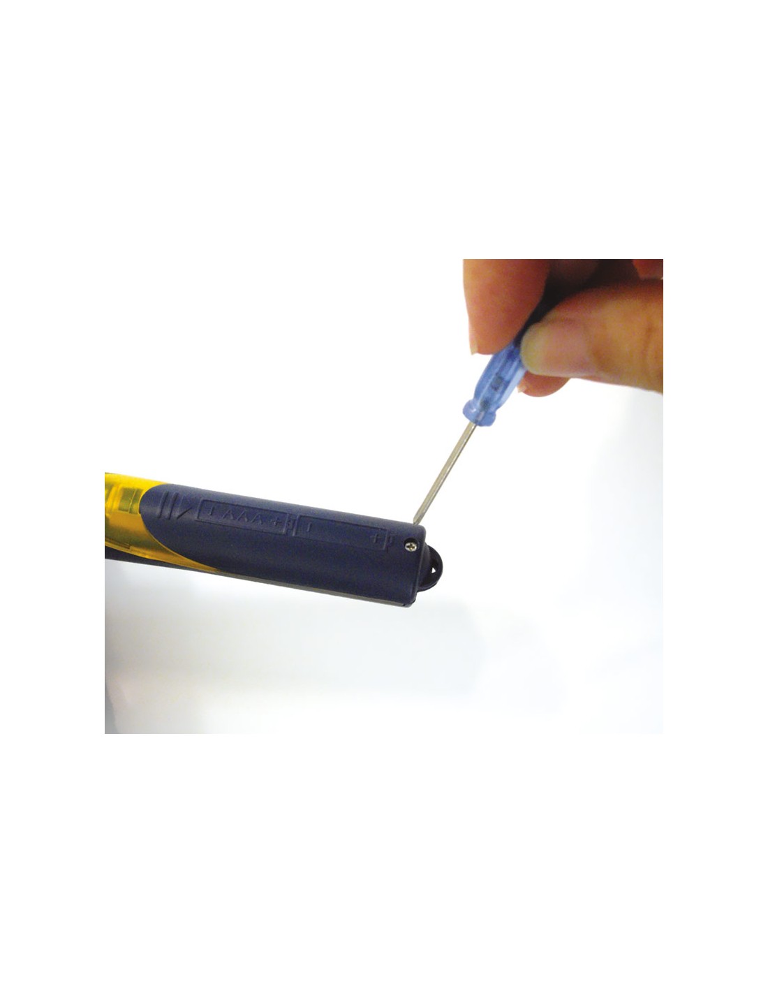 Detector de tensión sin contacto. Este detector proporciona una alternativa sencilla y segura a los usuarios de viviendas y a electricistas profesionales. Detecta el estado de un circuito eléctrico sin necesidad de tocar o conectar un dispositivo en la red. La información de si un circuito esta activo es mediante la iluminación del LED y sonido intermitente. La prueba de circuitos es para tensiones de 90V a 240Vca. Incluye un pequeño destornillador para abrir el compartimento de las baterías.