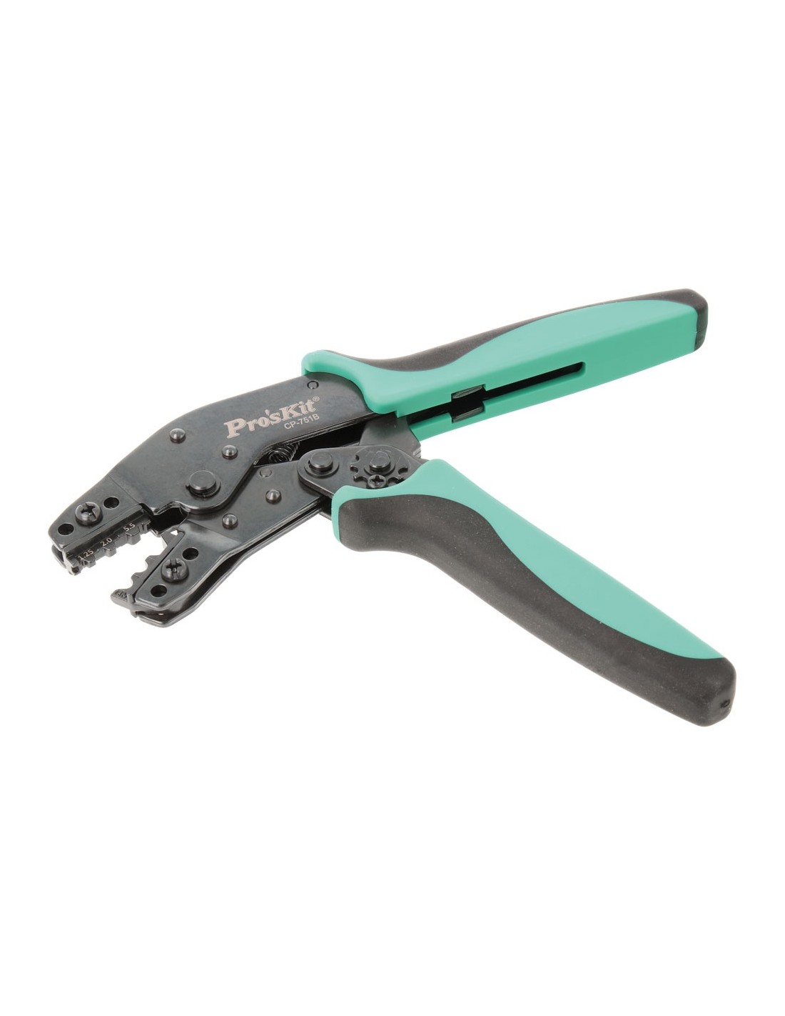 Crimpadora fabricada en acero al carbono de alta calidad con acabado de óxido negro. Alta calidad de engarzado debido a las matrices precisas y el bloqueo integral. Mango TPR antideslizante de forma ergonómica para comodidad del usuario. El mecanismo de trinquete proporciona un alto ahorro de esfuerzo y un buen ajuste de la presión. CARACTERÍSTICAS: - Cuerpo: Acero S50C - Troquel: Aleación de acero AISI 4140 - Mangos: PP + TPR - Apertura: 45 ° ± 3 ° - Aplicación: Engastado en terminales desnudos tubulares - Cables flexibles de: - AWG: 16 / 14 / 12-10 - DIN: 1.5 / 2.5 / 4-6mm2 - JIS: 1.25 / 2.0 / 3.5-5.5mm2 - Tamaño: 190mm / 7.5 - Peso: 370gr.