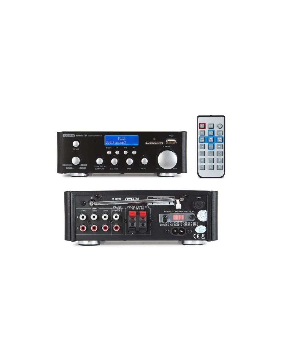 AS-22RUB (BLUETOOTH / USB / SD / FM / MP3) + MANDO A DISTANCIA.