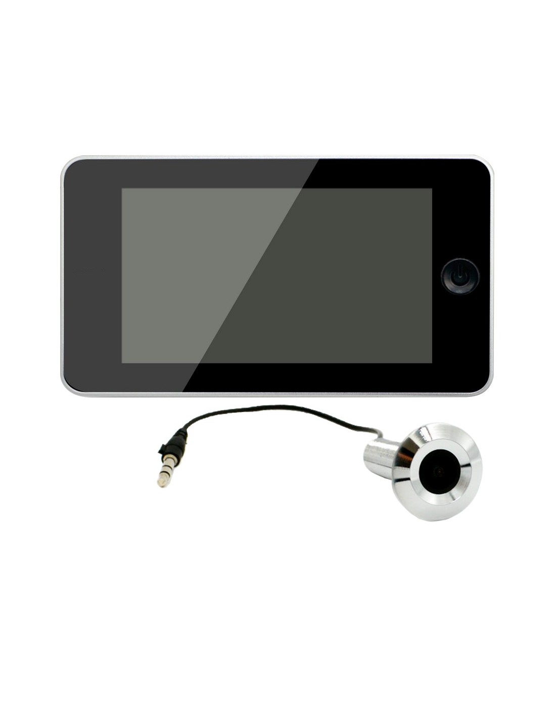 Mirilla digital en color de 4,3" Incluye cámara y monitor en color negro Ángulo de visión de 150º Botón de accionamiento silencioso Tiempo de respuesta de 0,5s Consumo mínimo en reposo Tiempo de visionado de 10s Funciona con 4 pilas AAA (no incluidas)
