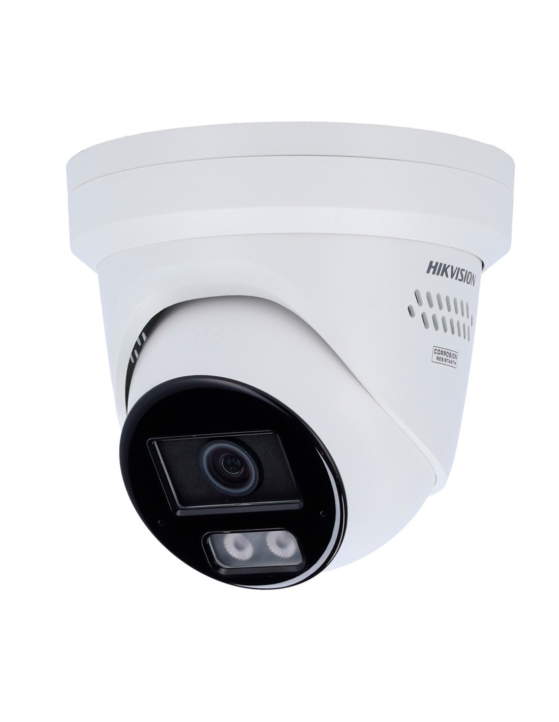 Hikvision cámara IP Turret gama PRO ColorVu3.0 - Resolución 8 MPx | PoE IEEE802.3at - ColorVu3.0: imagen a color HikAI-ISP F1.0 1/1.8" - 2.8 mm | Micrófono dual | Luz híbrida hasta 30m - AcuSense3.0 | Sirena y flash disuasorio - Alarmas 1/1 | IP67 | NEMA 4X