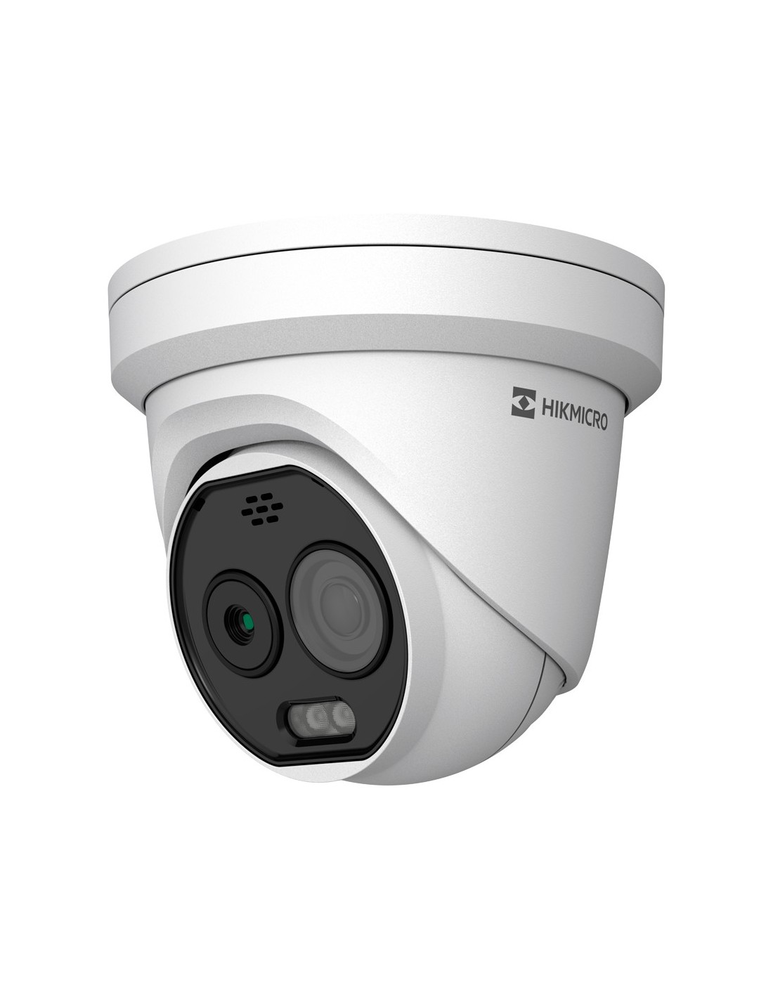Cámara térmica Dual IP Hikmicro - Sensor térmico 160x120 VOx | Lente 3.6mm - Sensor óptico 1/2.7” 5Mpx | Lente 4.3mm - Sensibilidad térmica =25mK - Detección de preventiva de incendios y alarma - Rango medición temp -20~150ºC / ±8ºC