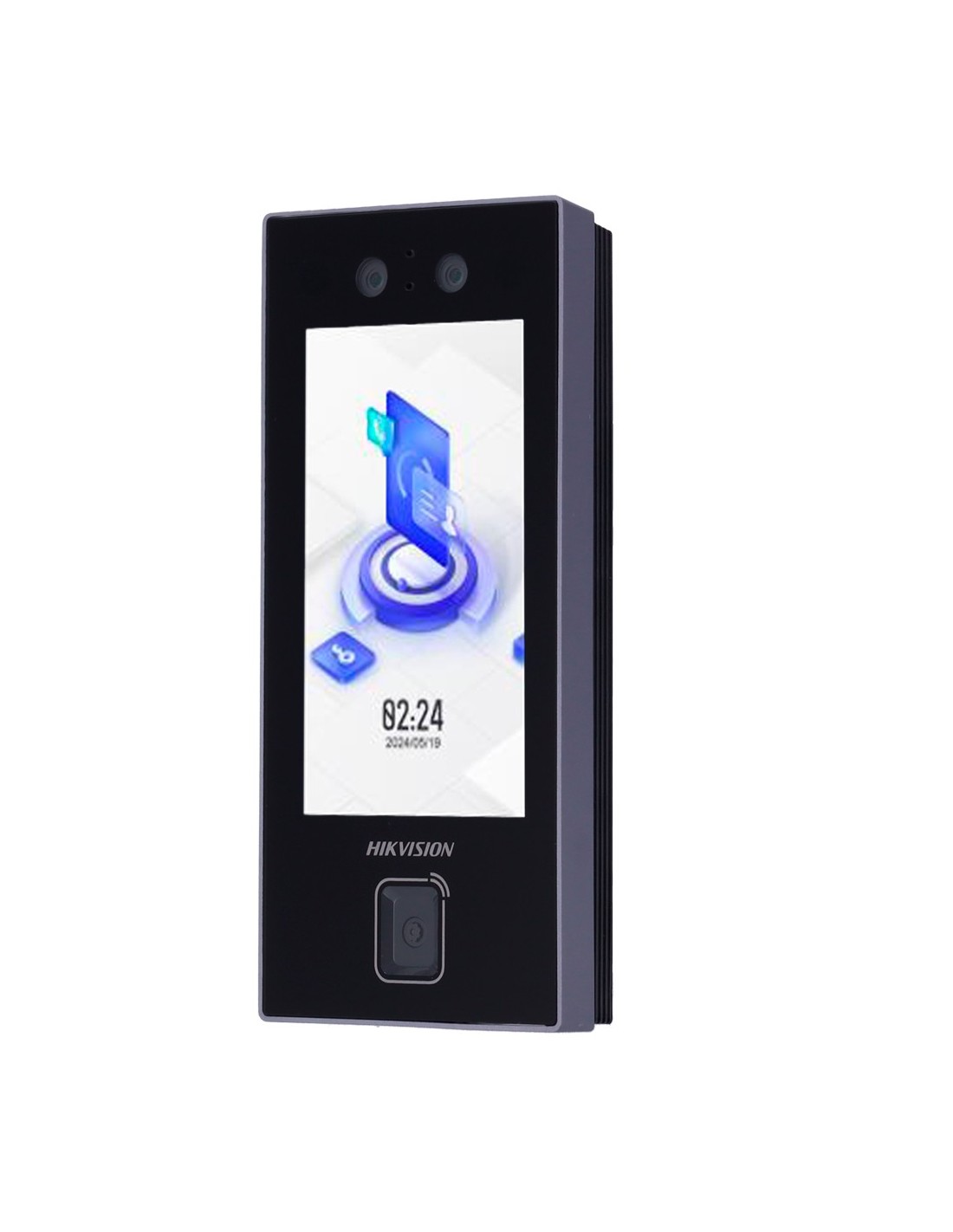 Este equipo permite la identificación a través de tarjetas o llaveros con tecnología MF de 13.56 MHz, lectura de códigos QR, así como teclado para códigos numéricos y biometría con reconocimiento facial.