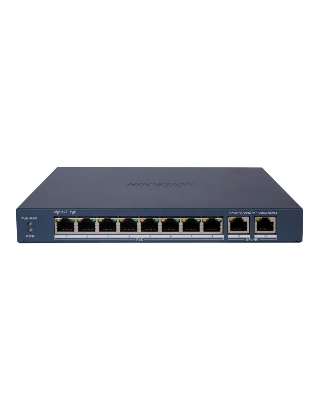 HIKVISION POE SWITCH GESTIONABLE - 8 PUERTOS POE 802.3AF/AT + 2 UPLINK RJ45 - 8 RJ45 10/100 MBPS + 2 RJ45 10/100/1000 MBPS - 80