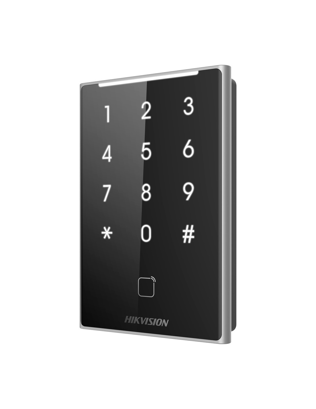 Lector de acceso - Acceso por tarjeta MF DESFire y PIN - Indicador LED y acústico - Wiegand 26/34 | RS485 - Compatible con controladoras Hikvision - Apto para exterior IP65