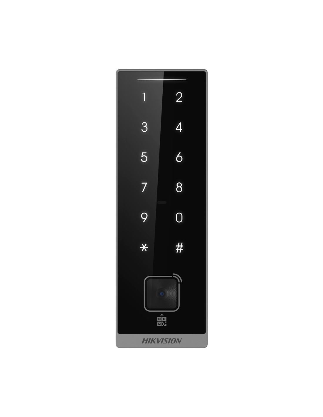 Lector de acceso para marcos - Acceso por tarjeta EM/MF, QR y PIN - Indicador LED y acústico - Wiegand 26/34 | RS485 - Compatible con controladoras Hikvision - Apto para exterior IP66