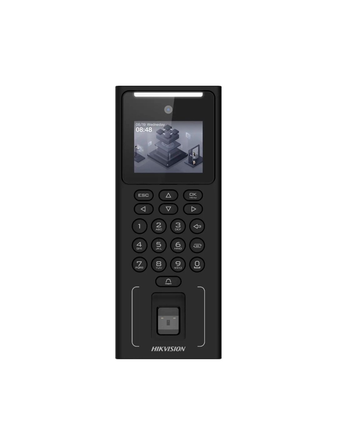 Control de acceso y presencia - Facial, huella, tarjeta MF y PIN - 500 usuarios | 150.000 registros - TCP/IP, WiFi, USB y RS485 - 2.4" TFT | Controladora integrada - iVMS-4200 | Hik-Connect