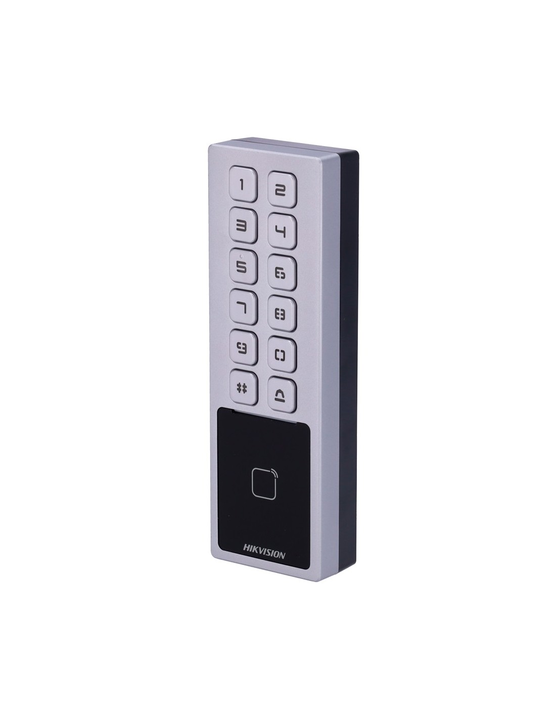 Este equipo permite la identificación a través de tarjetas o llaveros con tecnología RFID EM de 125 kHz, así como teclado para códigos numéricos.