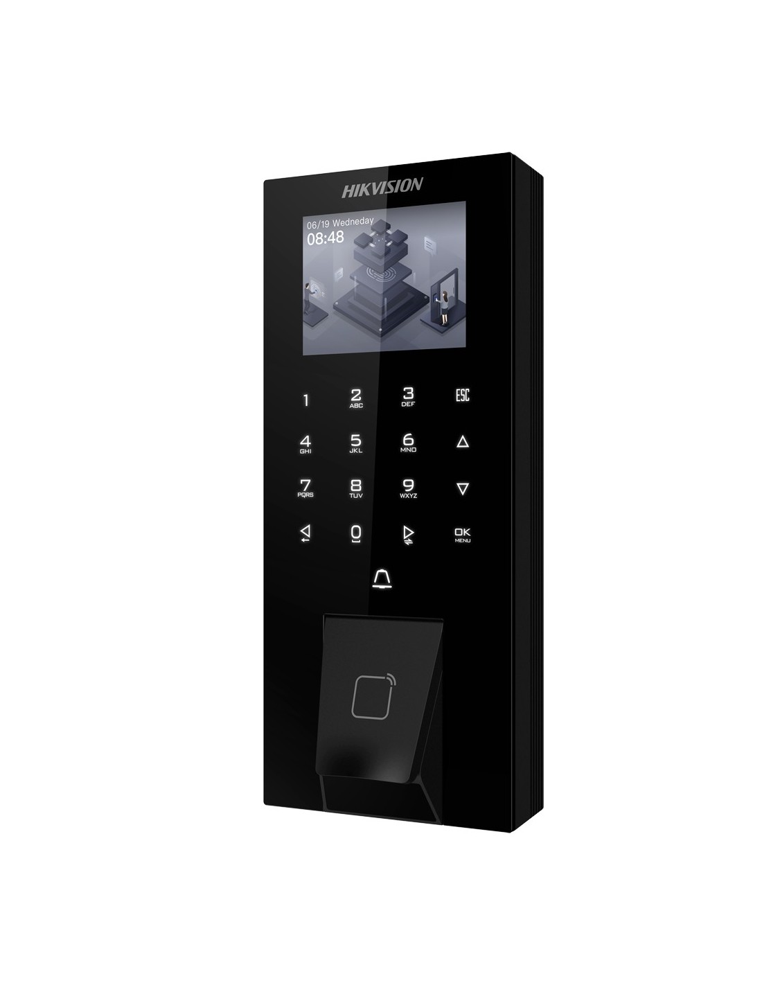 Este equipo permite la identificación a través de tarjetas o llaveros con tecnología MF de 13.56 MHz, así como teclado para códigos numéricos y biometría con huella dactilar.