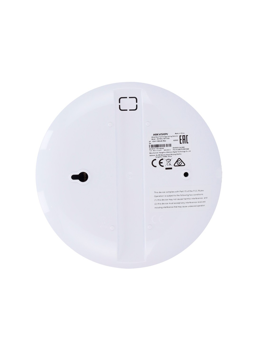 DETECTOR CABLEADO DE TECHO DOBLE TECNOLOGÍA - ALCANCE DETECCIÓN 12 M - RESISTENCIAS FIN DE LÍNEA (EOL) SELECCIONABLES - ALIMENTA