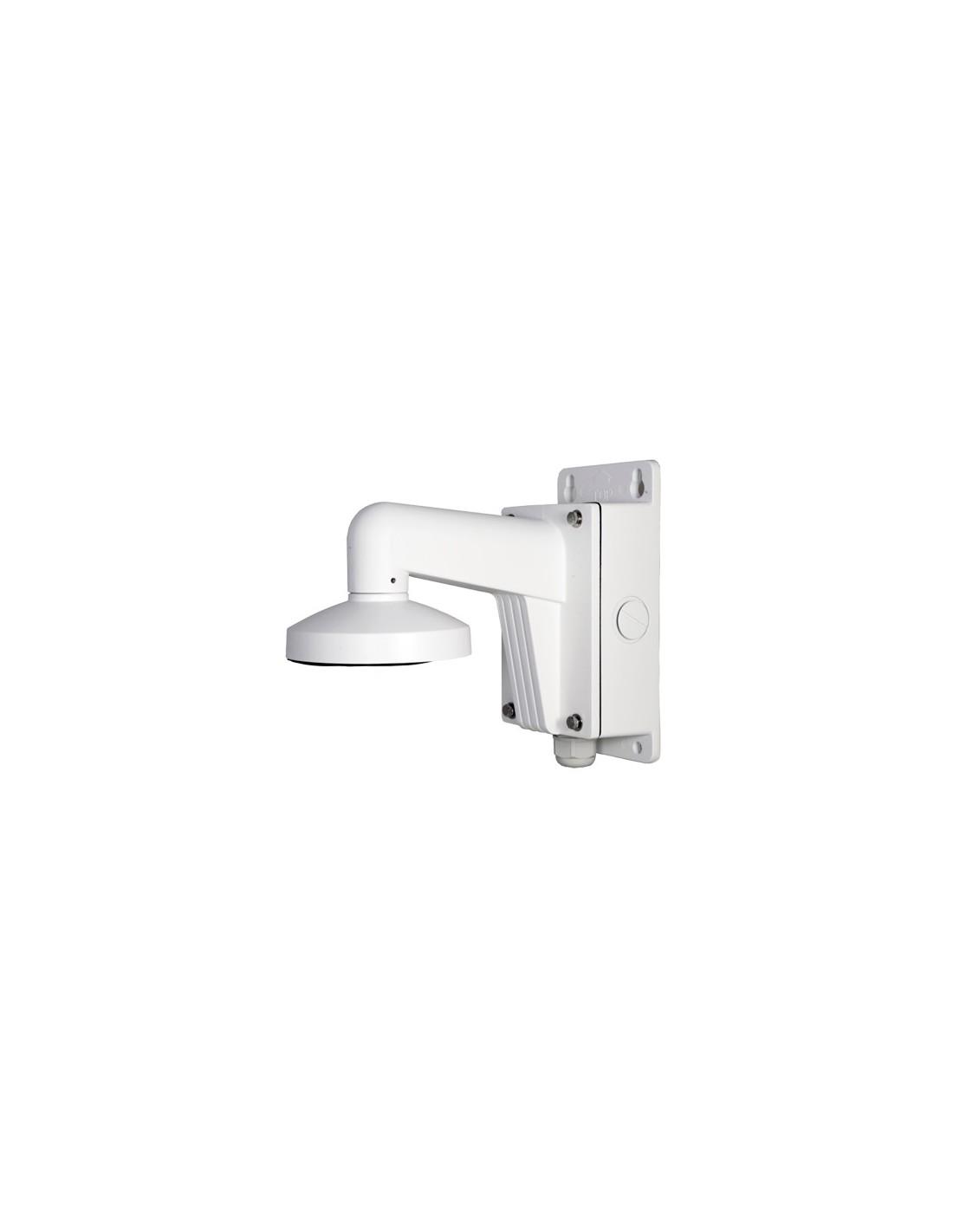Compatible con las cámaras (Ver compatibilidad de accesorios). Fijación a pared a través de 4 tornillos incluidos. La cámara queda fijada en el soporte a traves de tornillos, con lo que se garantiza la máxima fijación. Cuenta con caja de conexiones para alojar el alimentador, el cableado y los accesorios de la instalación en su interior. Dispone de múltiples orificios para instalación de diferentes tipos de cámaras domo o bullet.Permite el paso interno del cableado.
