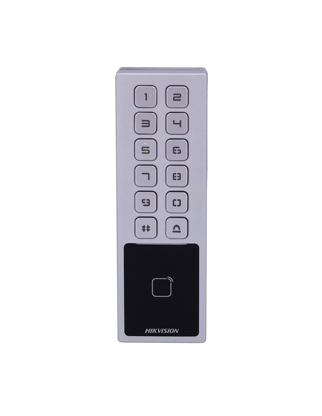 Este equipo permite la identificación a través de tarjetas o llaveros con tecnología MF de 13.56 MHz, así como teclado para códigos numéricos y biometría con huella dactilar.
