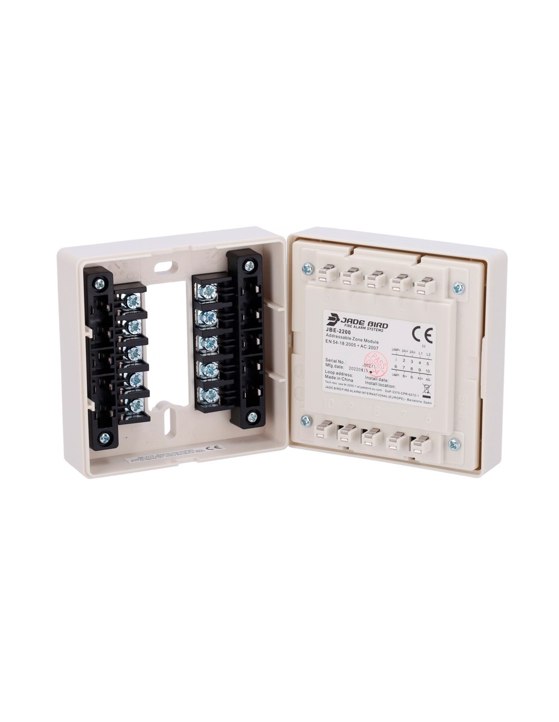 Módulo analógico Jade Bird - Módulo de zona convencional - Alimentación por lazo o externa - Cable conductor hasta 2.5mm2 - REOL de 4k7 ? (suministrada) - Certificado EN 54-18
