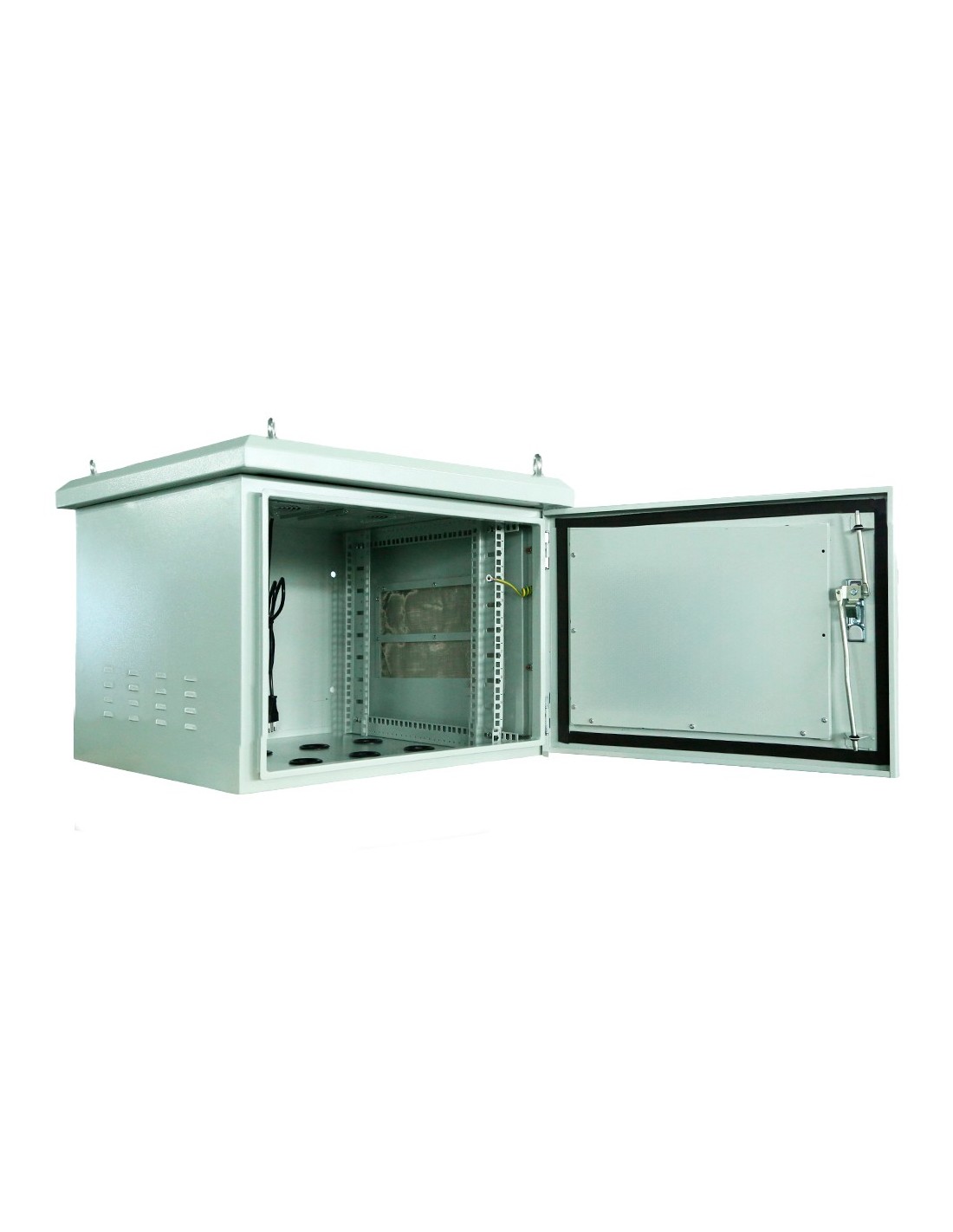Armario rack para pared - Hasta 6U rack de 19" - Hasta 100 Kg de carga - Con Rejillas de ventilación y pasacables - Grado de protección IP65 - 8 Entradas para cableado / 2 ventiladores