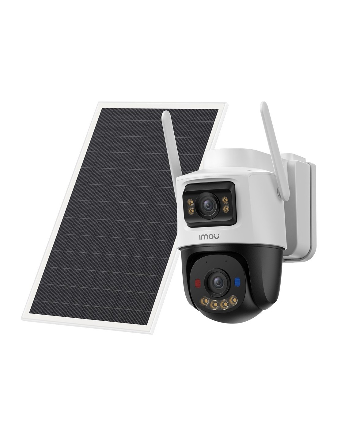 Kit Cámara AOV Dual kit 5MP+5MP - 4G+SIM / WiFi/ 10000 mAh / Panel Solar 8W - 3.6mm / Autotracking / IR + Full-color - Audio bidireccional / Sirena + Flash azul-rojo - IMOU SENSE humanos + 128GBSD - Apta para exterior