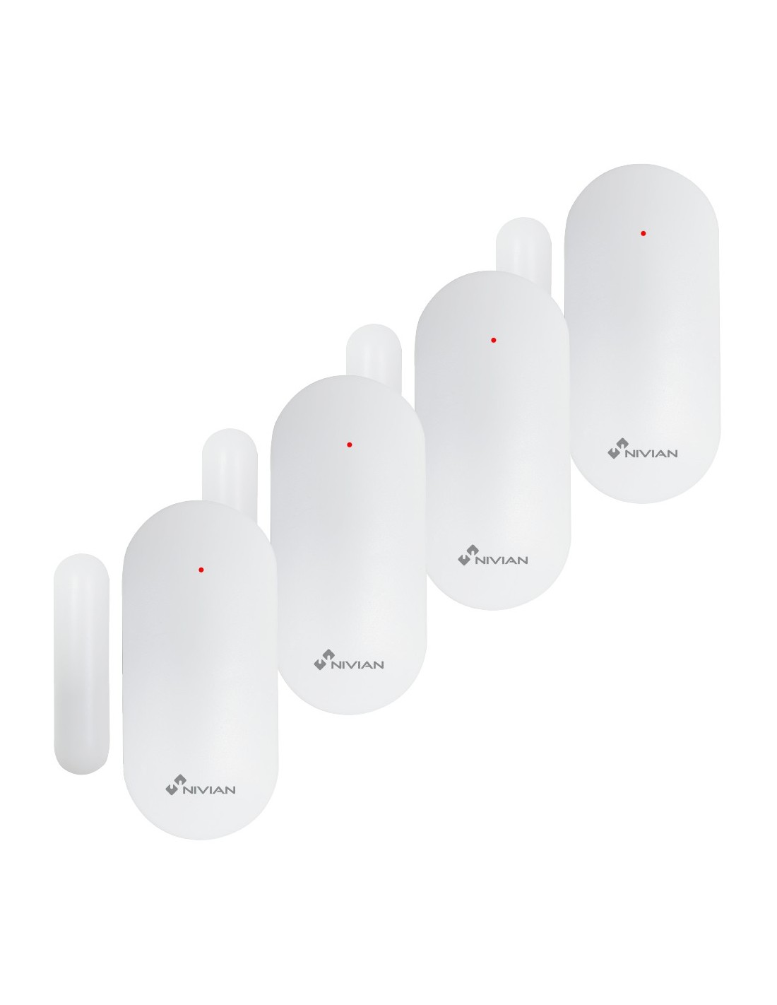Nivian Smart - Contacto magnético para puertas y ventanas - Instalación con adhesivo de doble cara - Indicador LED - Inalámbrico 433MHz - Compatible con panel de alarma Nivian Smart