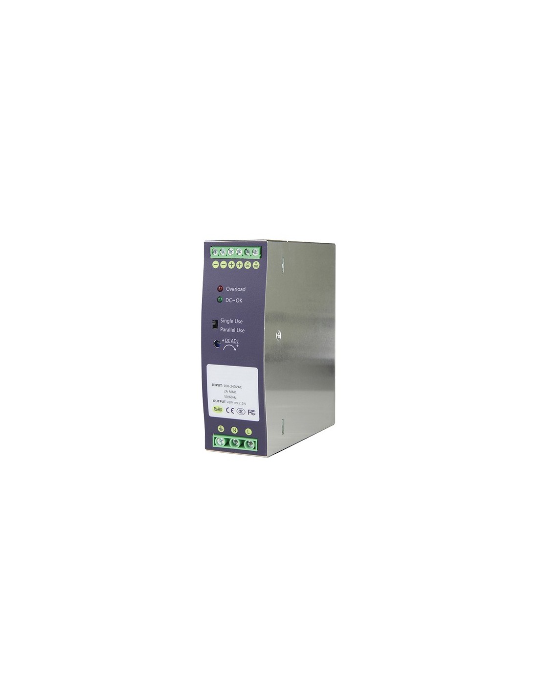 Fuente de alimentación conmutada - Salida DC 48 V 5 A / 240 W - 2 salidas - Voltaje entrada 100 V ~ 240 V - 123.5 (Al) x 41 (An) x 110.3 (Fo) mm - Montaje en carril DIN
