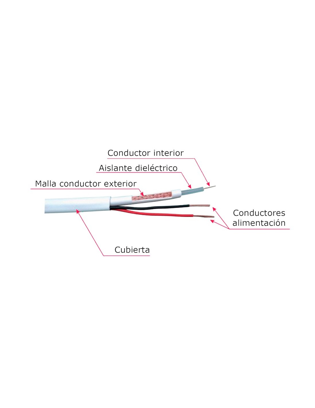 Cable Combinado - RG59 + alimentación - Rollo de 100 metros - Cubierta color blanco - Diámetro exterior 9.0 mm - Bajas pérdidas