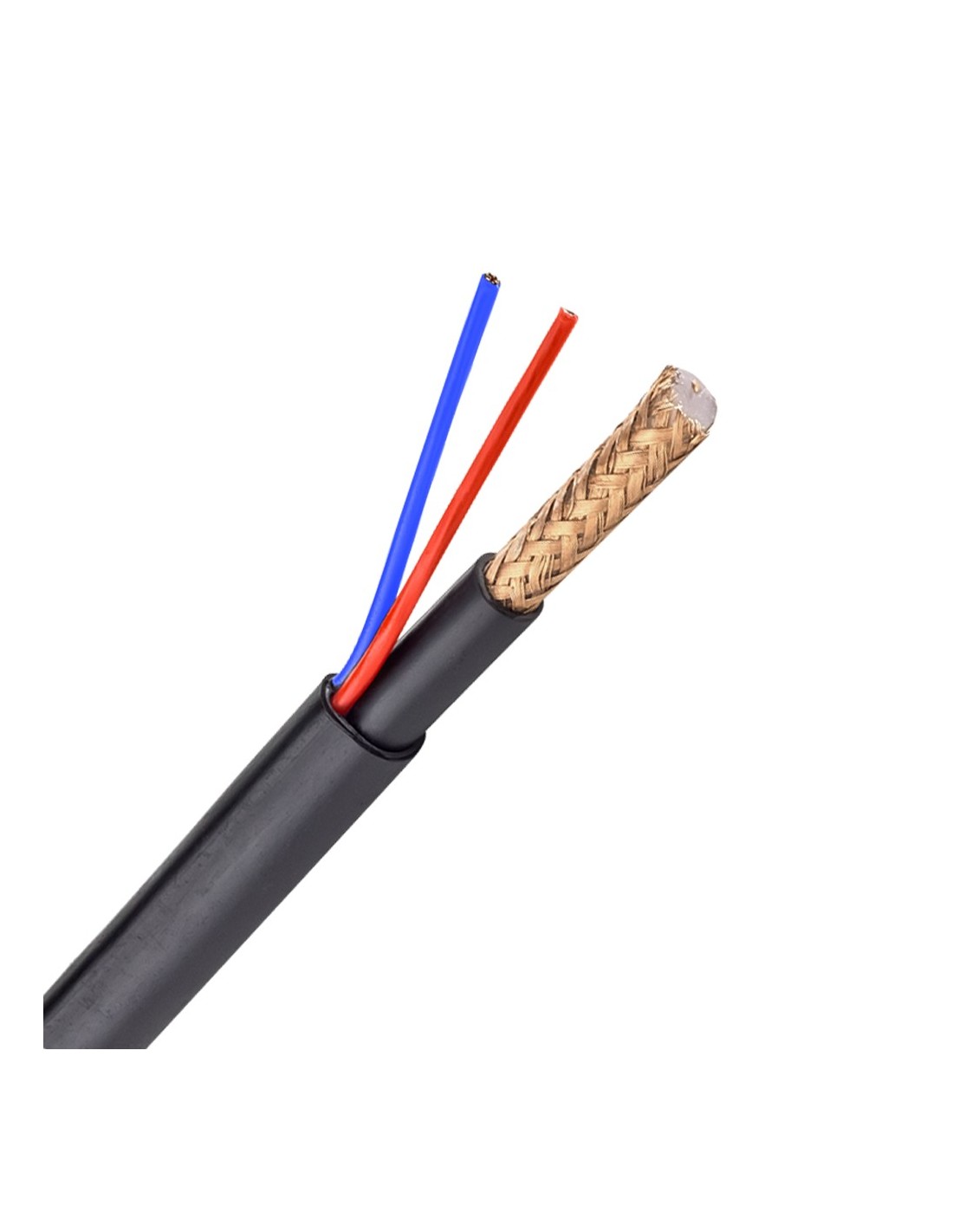 Cable Combinado - Micro RG59 + alimentación - Rollo de 300 metros - Cubierta color negro - Diámetro exterior 6.8 mm - Cubierta exterior LSZH