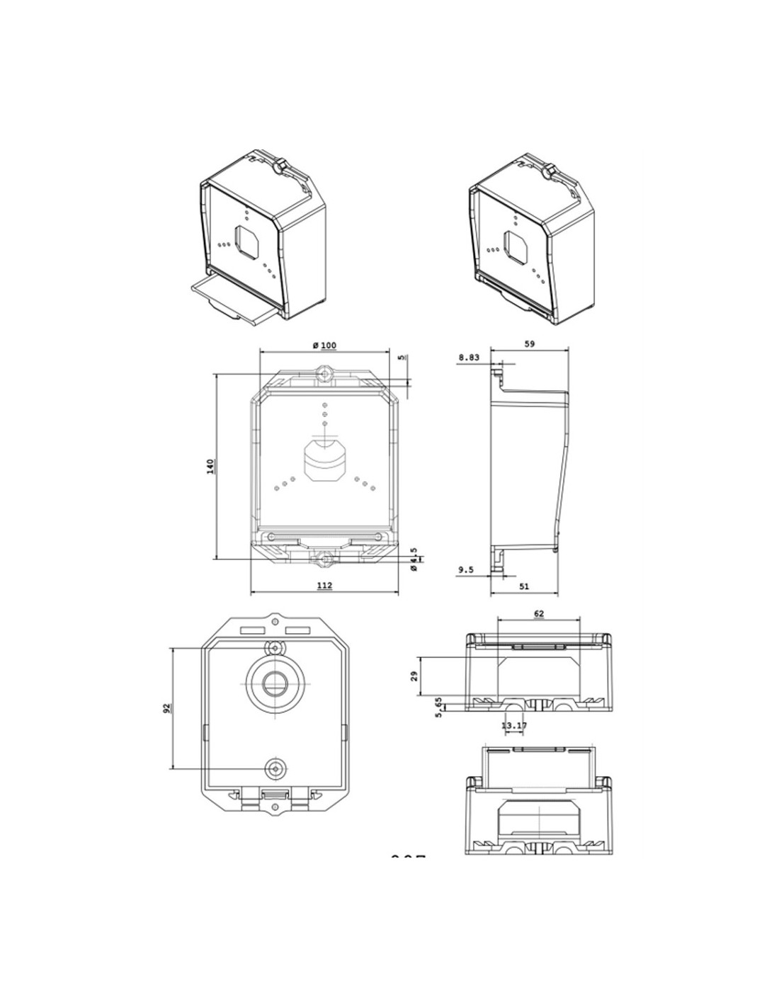 Caja de conexiones - Para cámaras domo - Apto para uso exterior - Fabricada en plástico - Color blanco - 140 (Al) x 100 (An) x 59 (Fo) mm