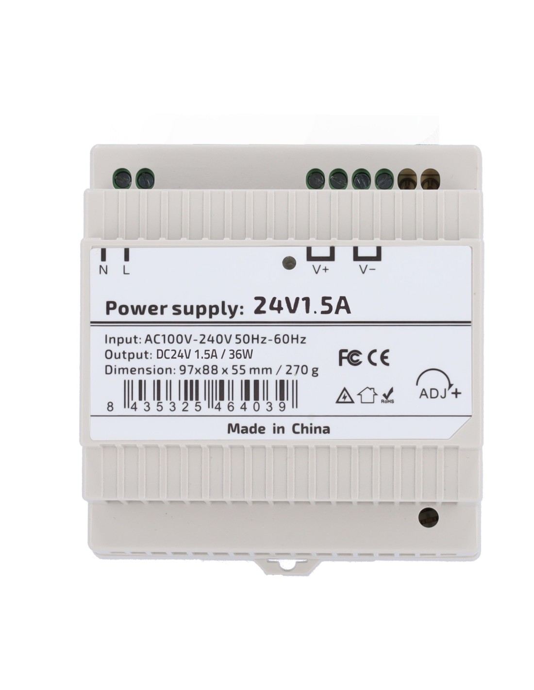FUENTE DE ALIMENTACIÓN  - SALIDA DC 24 V 1.5 A / 36 W - VOLTAJE ENTRADA AC 100V ~ 240V 50HZ-60HZ -  97 (FO) X 55 (AL) X 88 (AN)