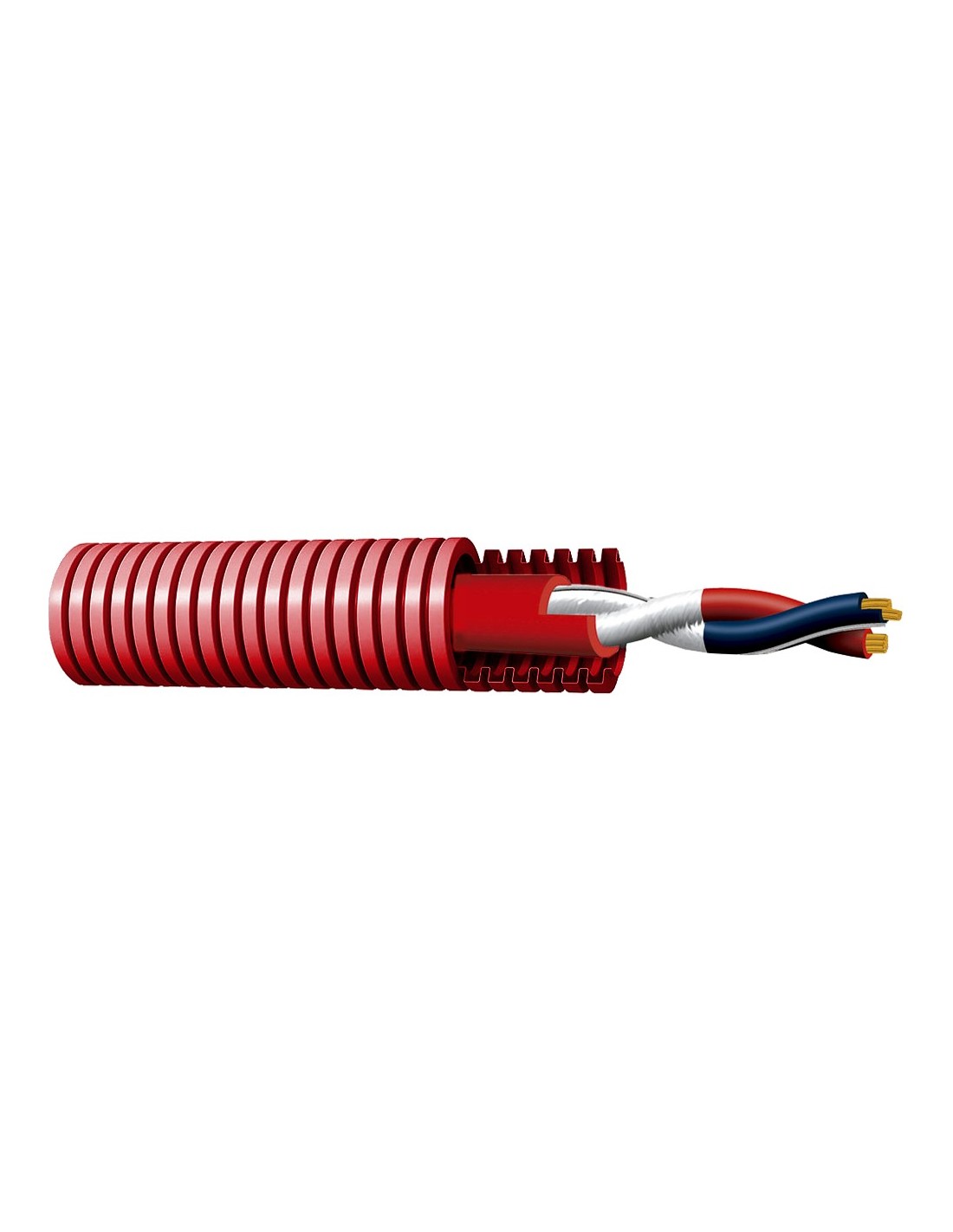 Bobina de cable trenzado apantallado - Resistente al fuego RF 120 minutos - Rollo de 100 metros - Conductor cobre 2x1.5mm2 - Certificado CPR Cca -1sb, a1, d1 - Certificado EN 50575 | Resistencia 13.9 ?/Km - Precableado en tubo corrugado
