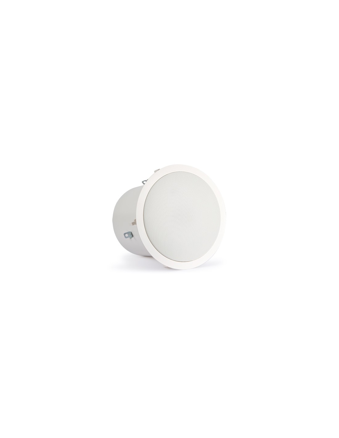 Altavoz de techo subwoofer con rejilla redonda y caja de acero antifuego. Sistema de radiación bass reflex para refuerzo de graves en instalaciones de línea 100 V.