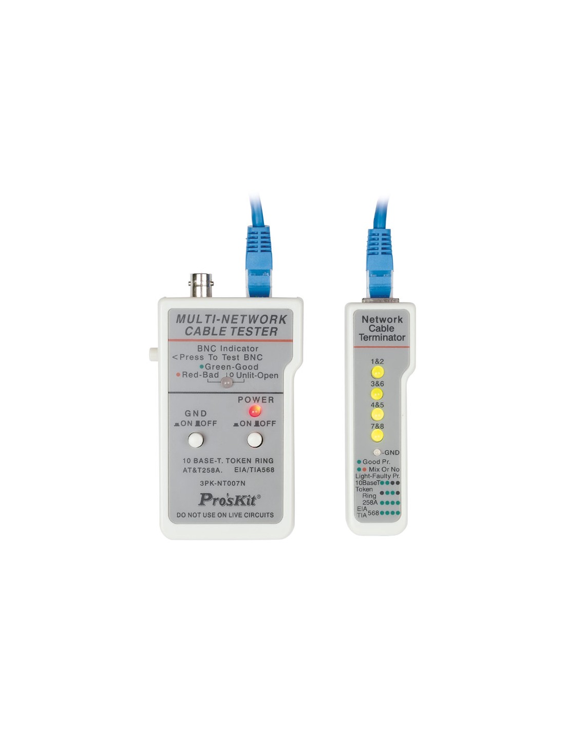 Multicomprobador de cables de redes y BNC, está diseñado especialmente para el escaneado, continuidad, detección y polaridad de conductores (BNC) y RJ45.