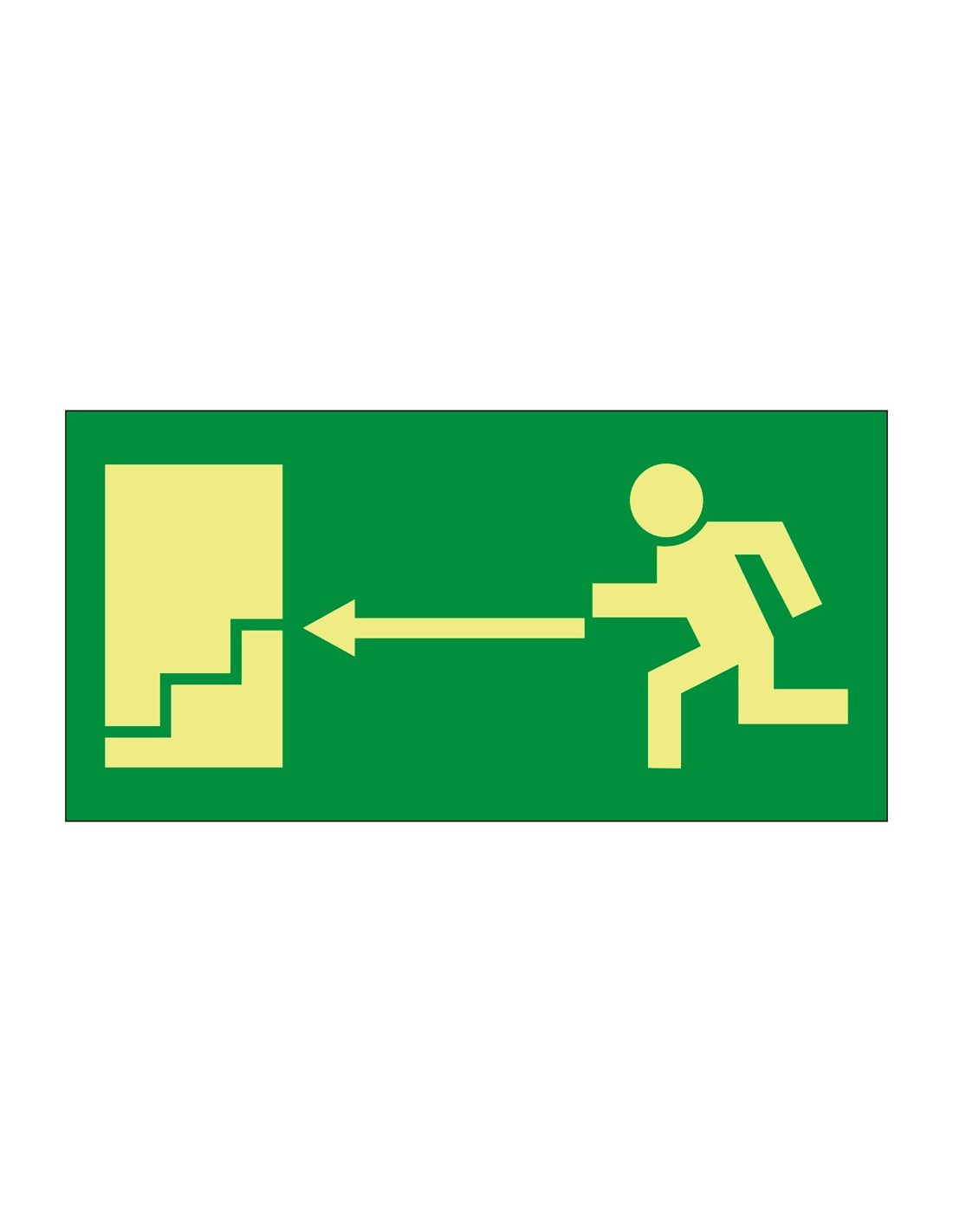 Cartel de señalización - Salidas y recorridos de evacuación - Evacuación salida descendente izquierda - Colores fotoluminiscentes - Categoría B - Distancia de Visualización <10m
