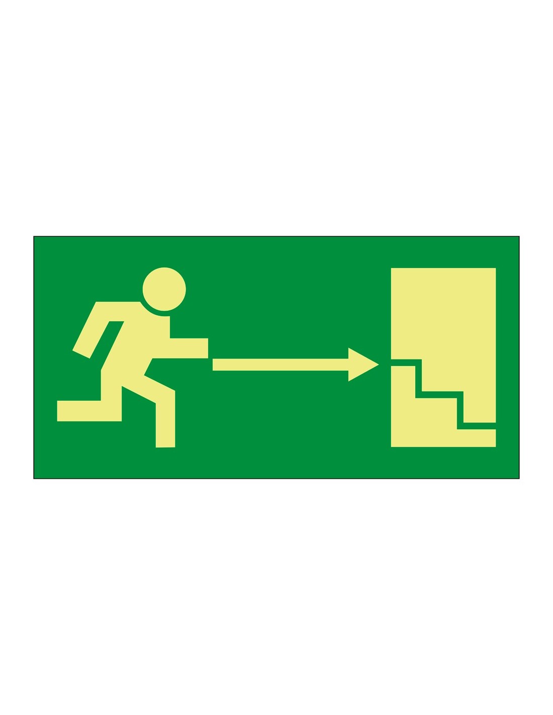 Cartel de señalización - Salidas y recorridos de evacuación - Evacuación salida descendente derecha - Colores fotoluminiscentes - Categoría B - Distancia de Visualización <10m