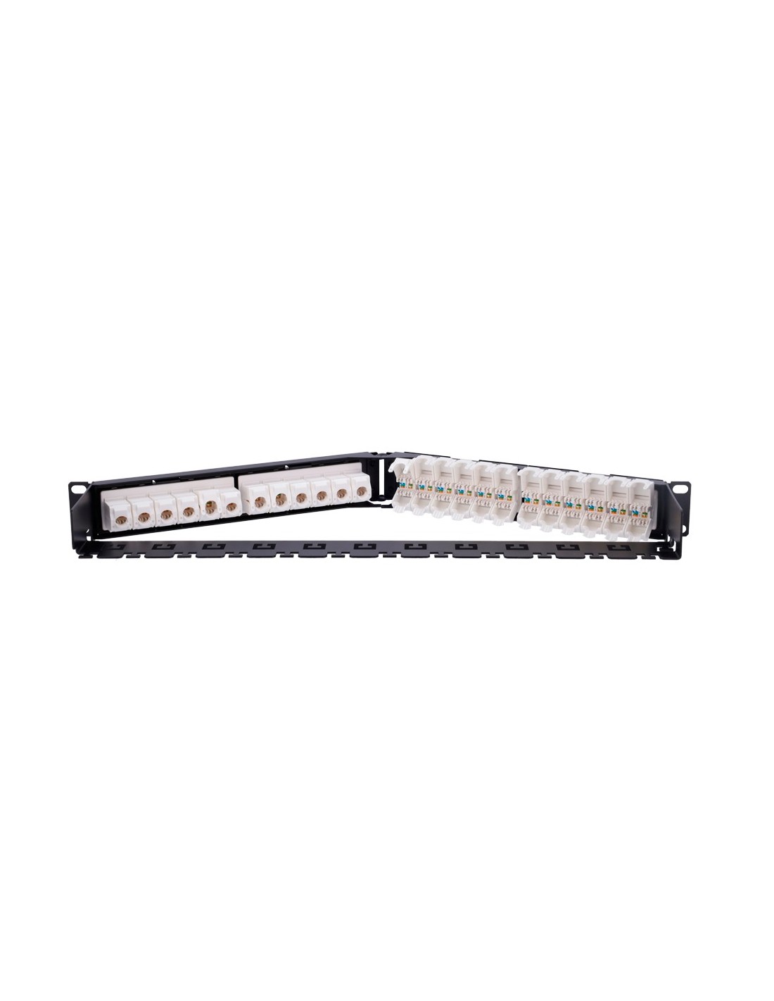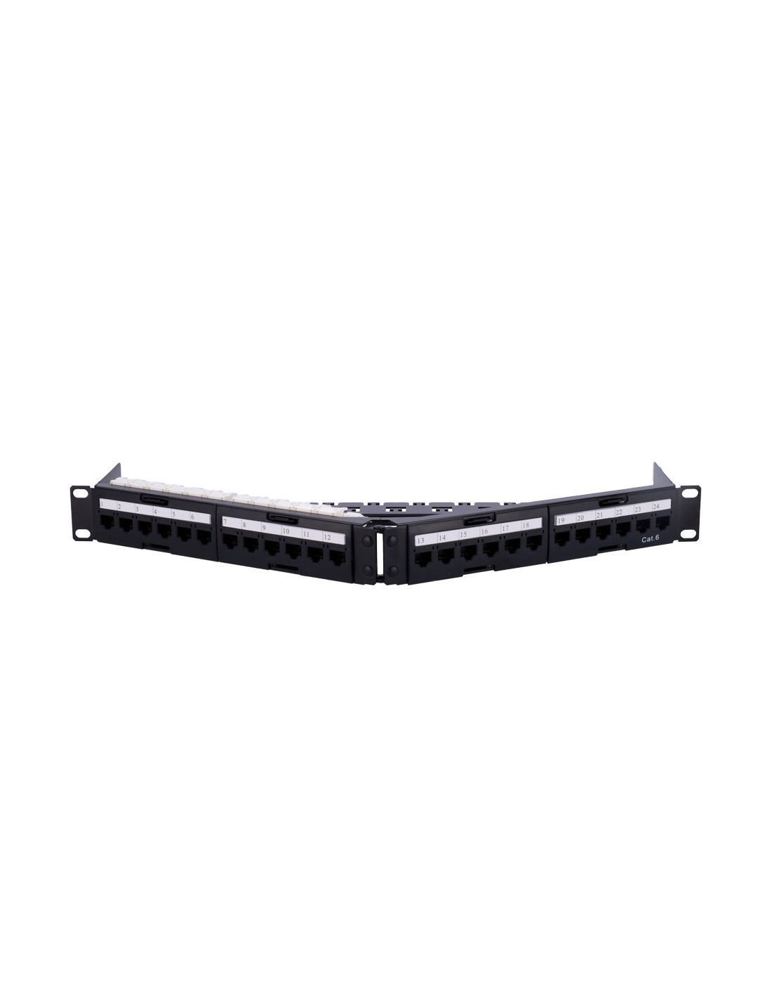 PATCH PANEL ANGULAR DE 24 PUERTOS UTP - ADMITE CABLES HASTA CAT6 - FORMATO ENRACKABLE 1U - TAMAÑO 1 U PARA FACILITAR LA INSTALAC